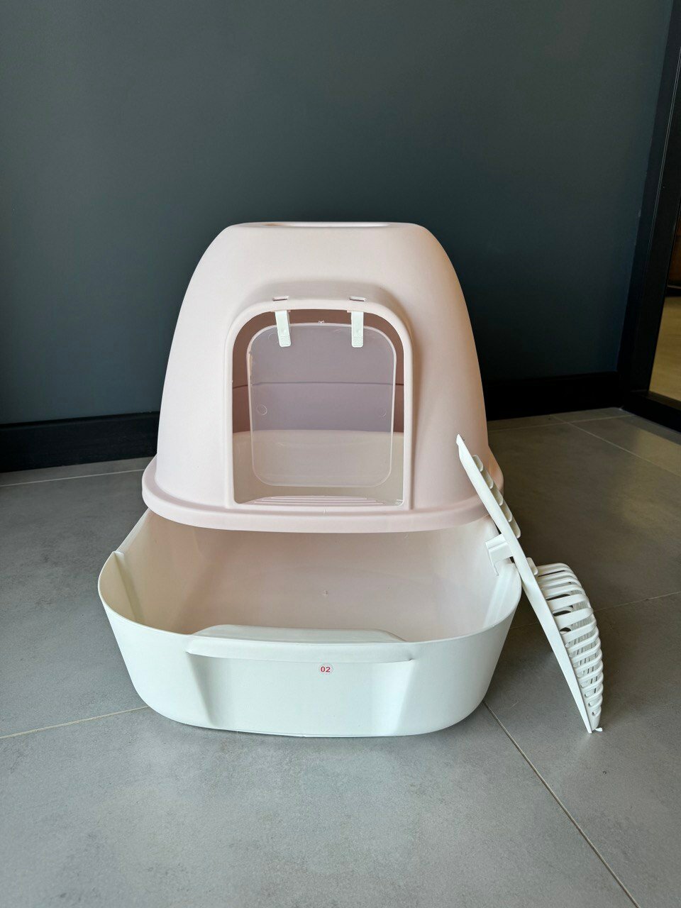Купить Закрытый лоток для кошек "Чистый Котик" с поддоном и совком,розовый,пластик 53,2x41x40,6