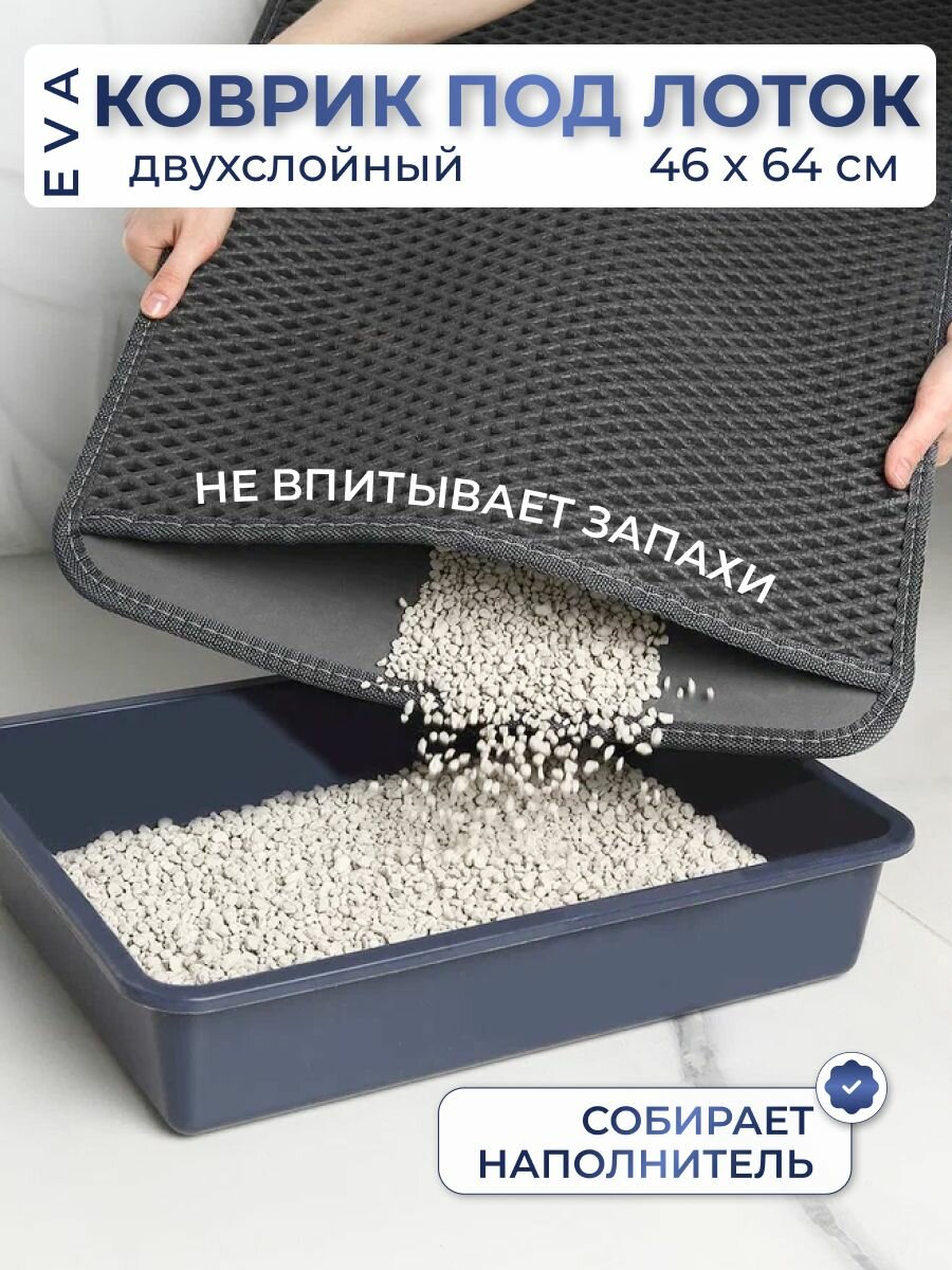 EVA Коврик с решеткой для кошачьего лотка Eco Cover, двухслойный, 46x64, серый интересное: