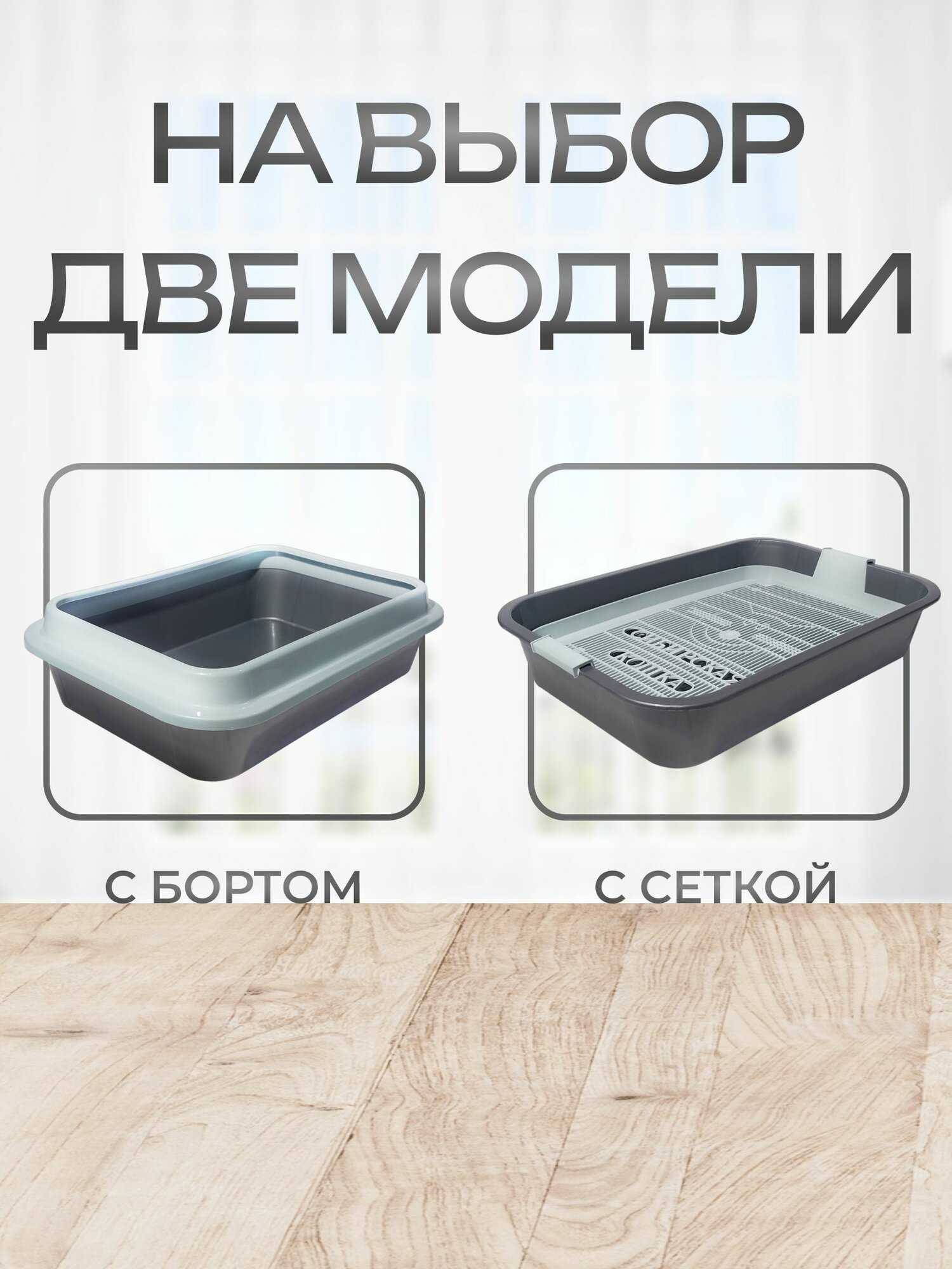 Туалет лоток для кошек с сеткой сибирская кошка, серебро, 37,5*27*7,5 см