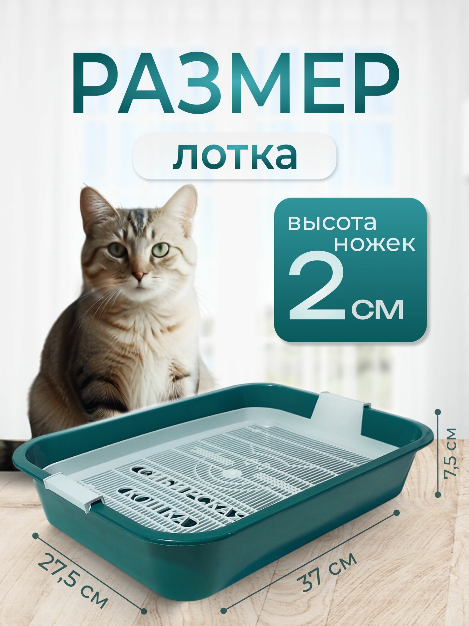 Сибирская кошка Туалет для кошек с сеткой, высокие ножки, зеленый, 37,5*27*7,5см 0.4 кг