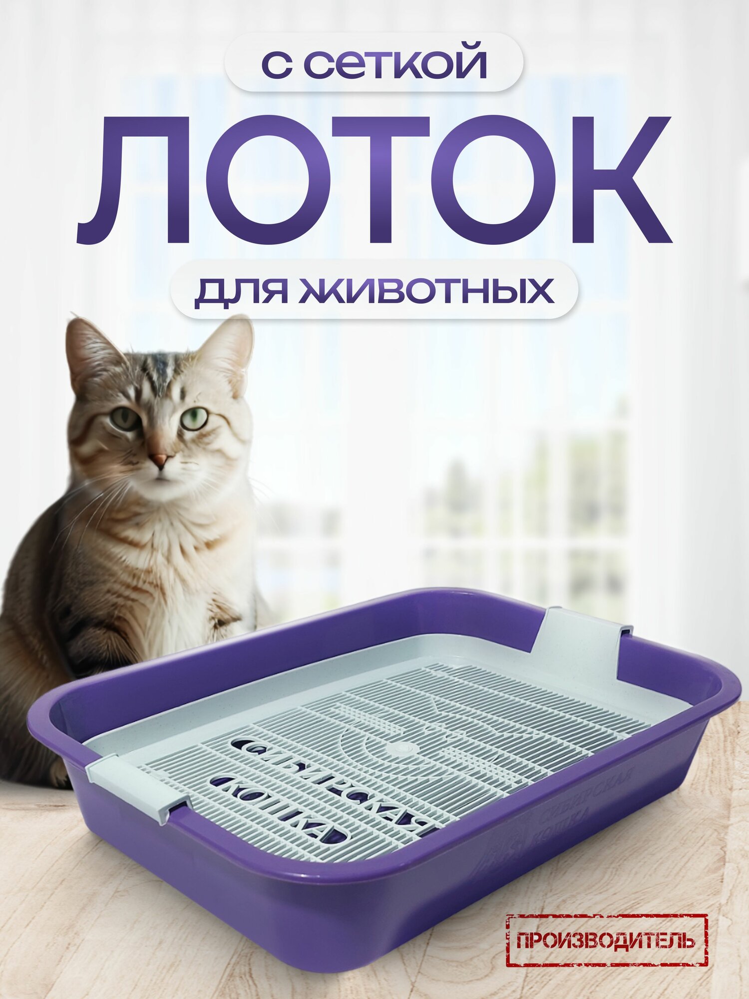 Туалет Сибирская кошка с сеткой, фиолетовый для кошек