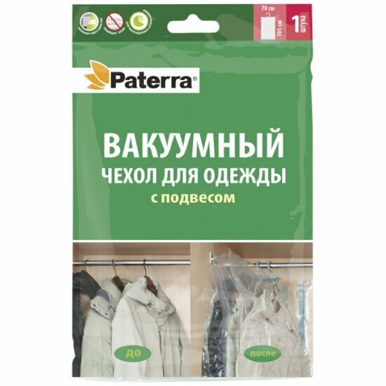 | Комплектация | Paterra Чехол для одежды вакуумный, компресионный с вешалкой, 105х 70 см, 1 шт |