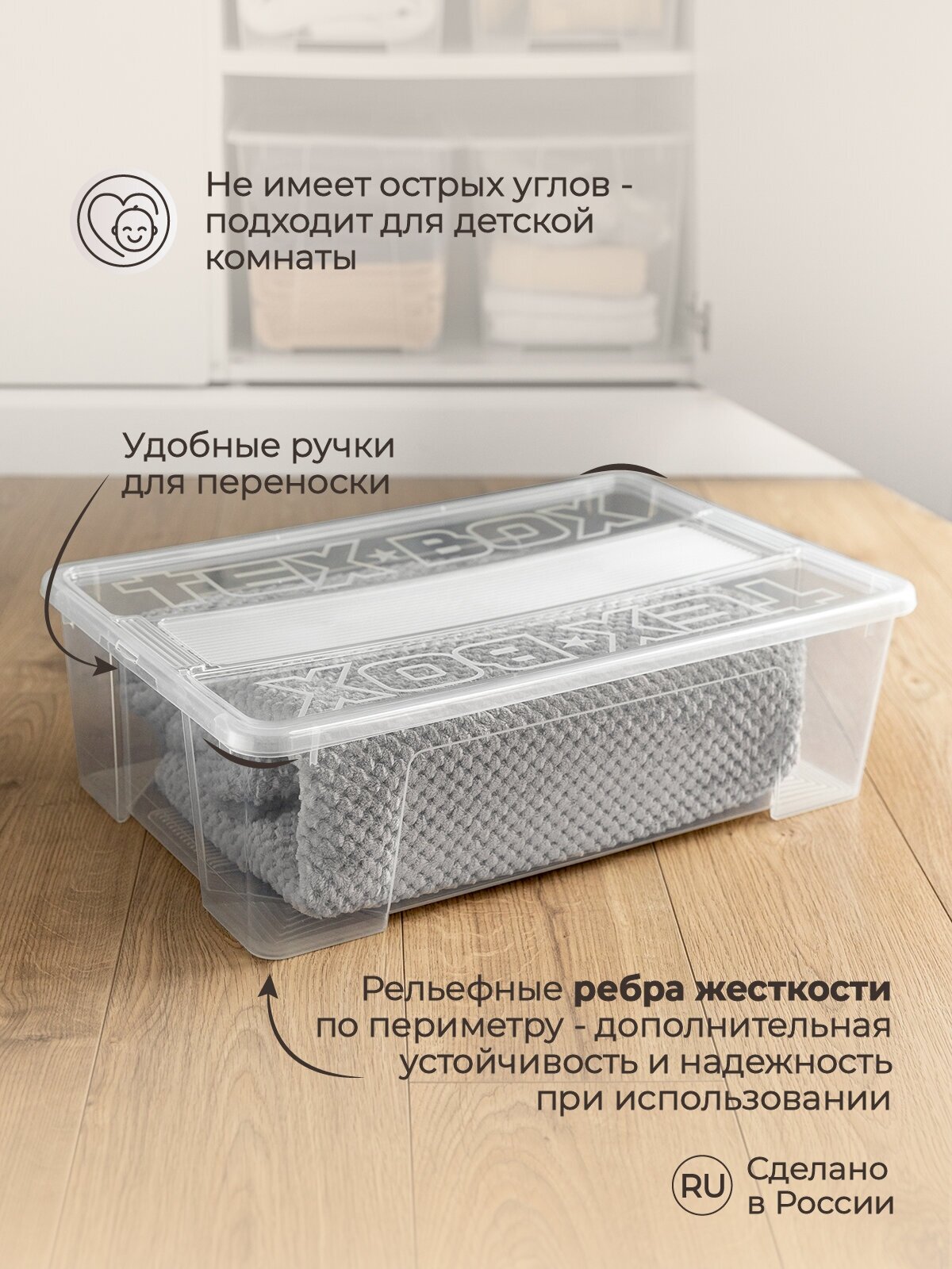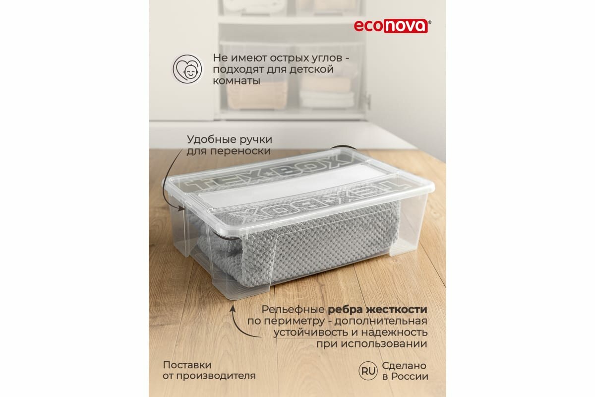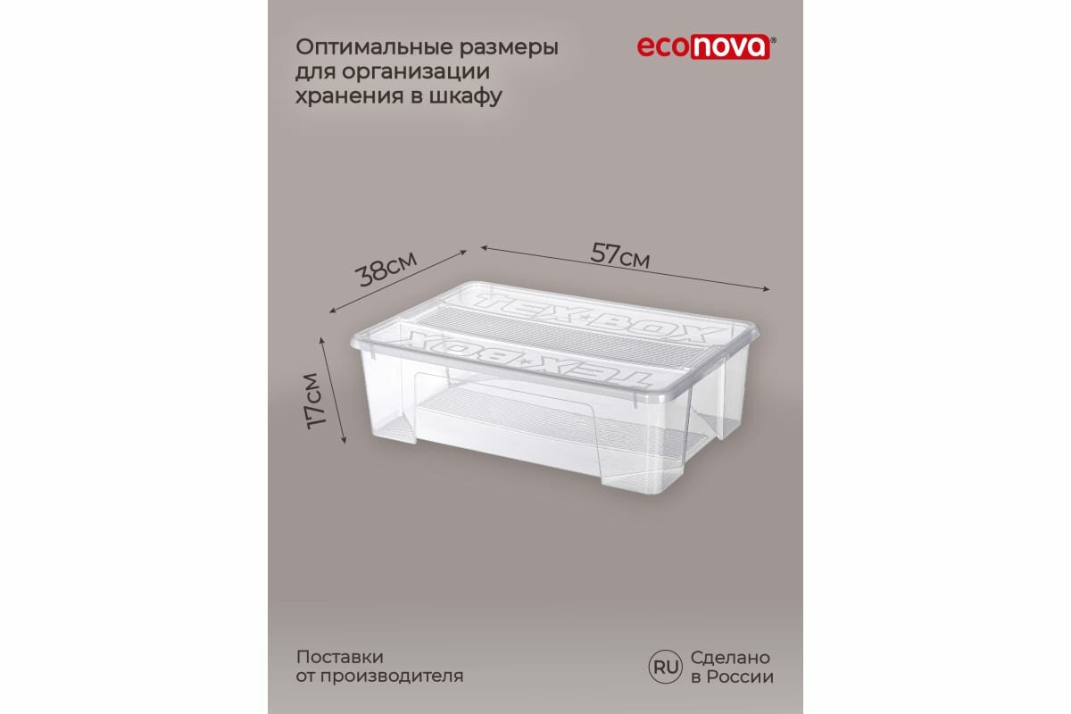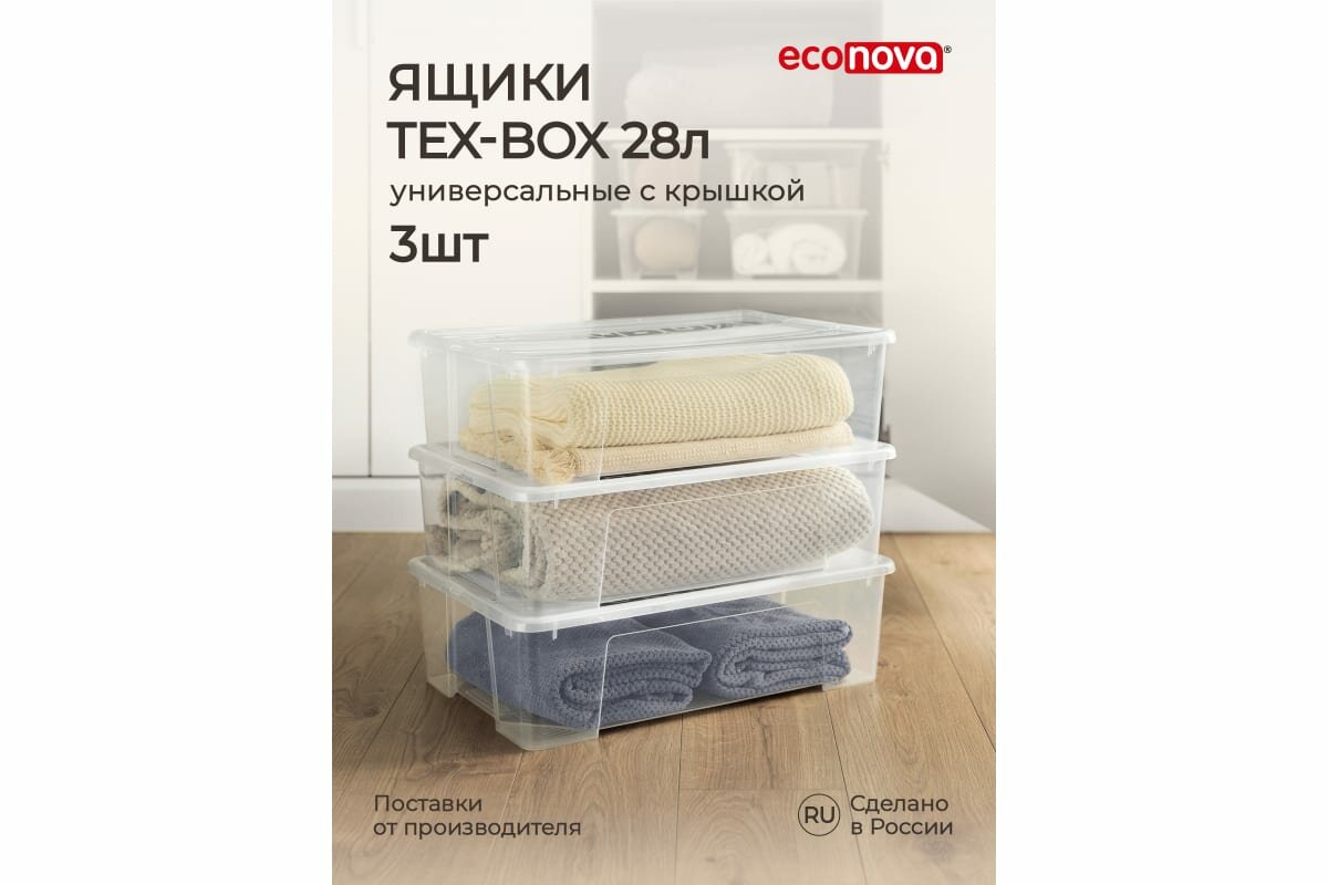 | Комплектация | Комплект ящиков для хранения с крышкой Tex-box 28л. - 3шт. |