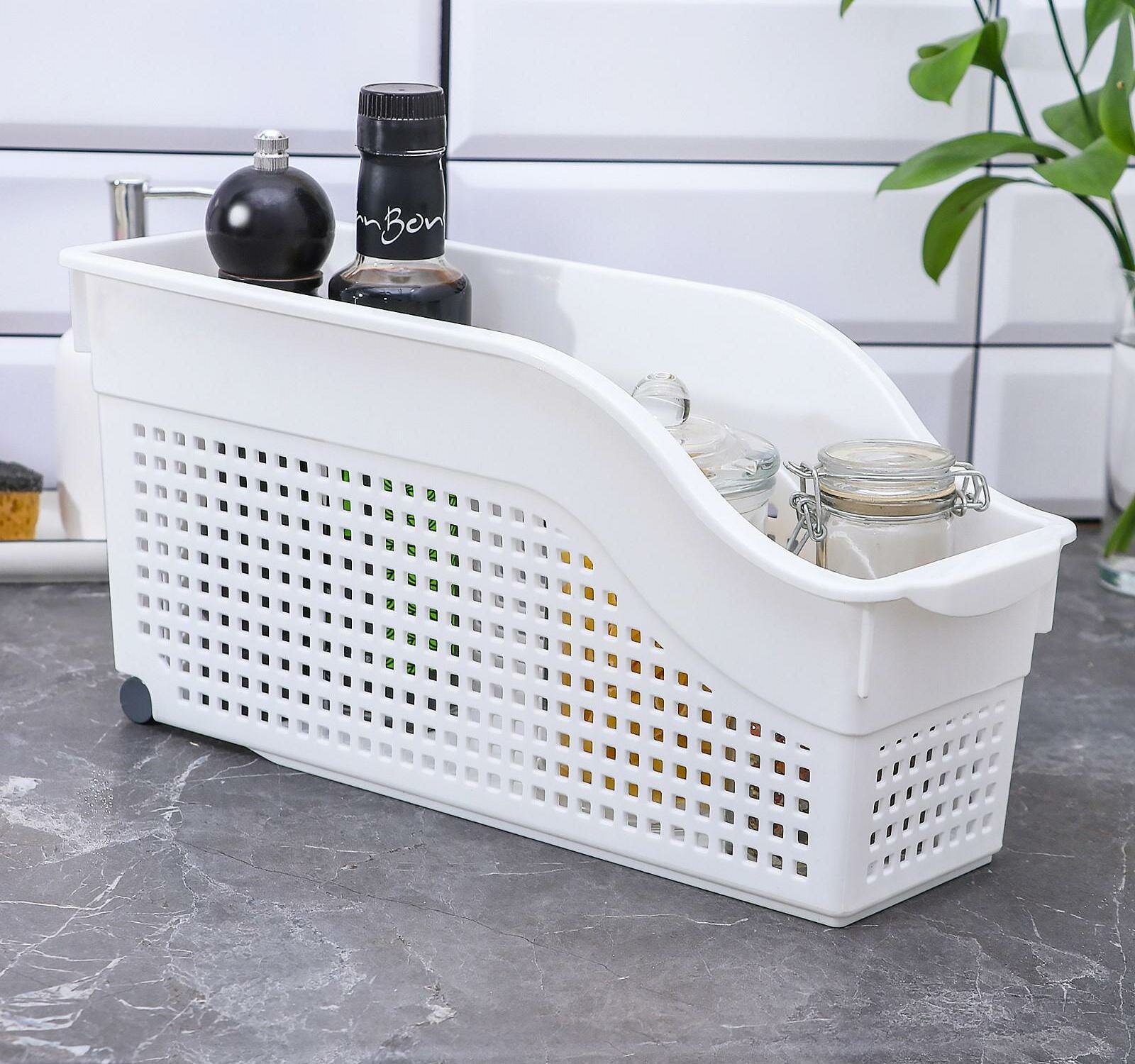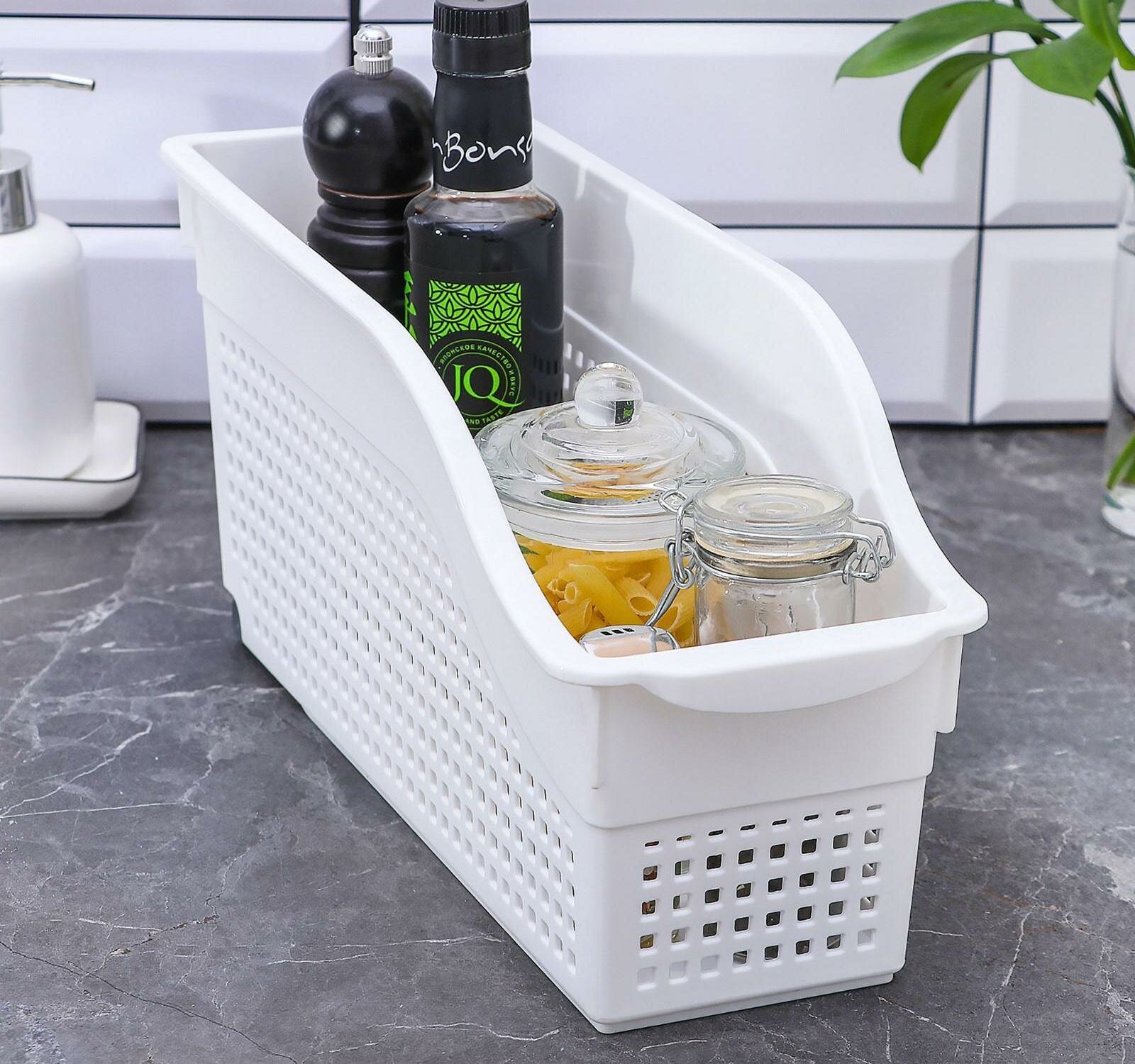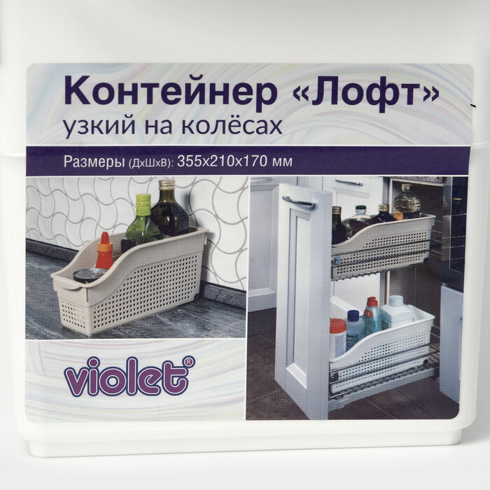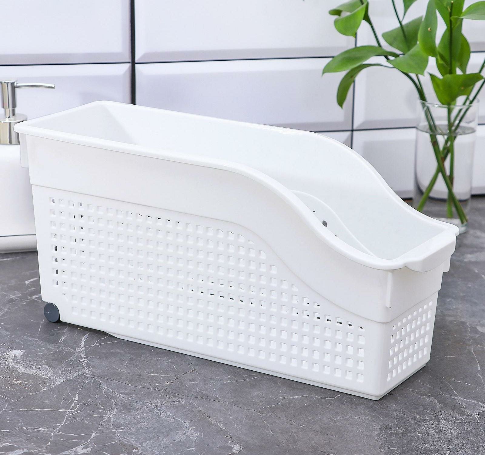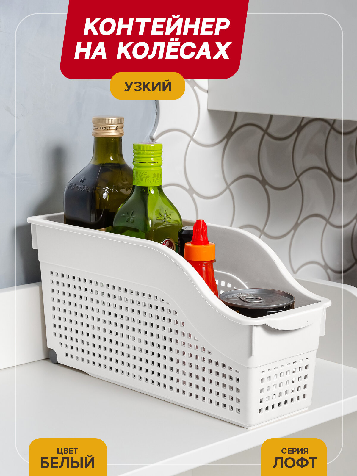 Контейнер для хранения на колесах узкий Лофт, цвет белый / органайзер хозяйственный для кухни, ванной