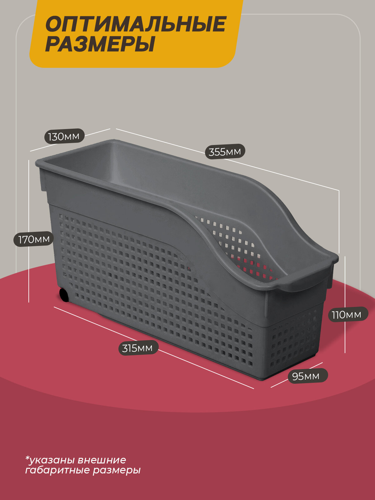 СохранитьКонтейнер для хранения на колесах узкий Лофт, цвет серый / органайзер для кухни, ванной / контейнер хозяйственный интересное:
