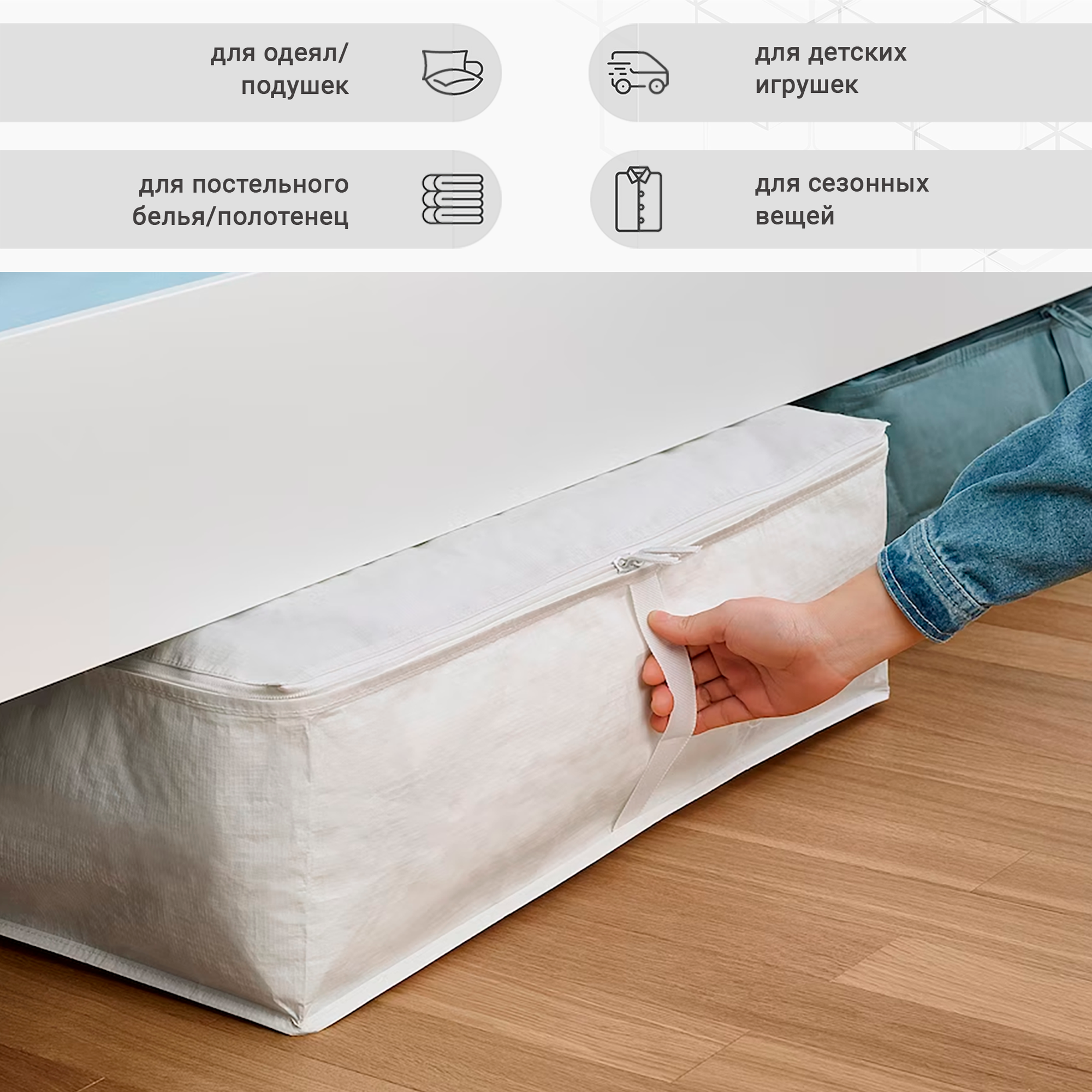 | Особенности | на молнии / подкроватный / с крышкой / складной |