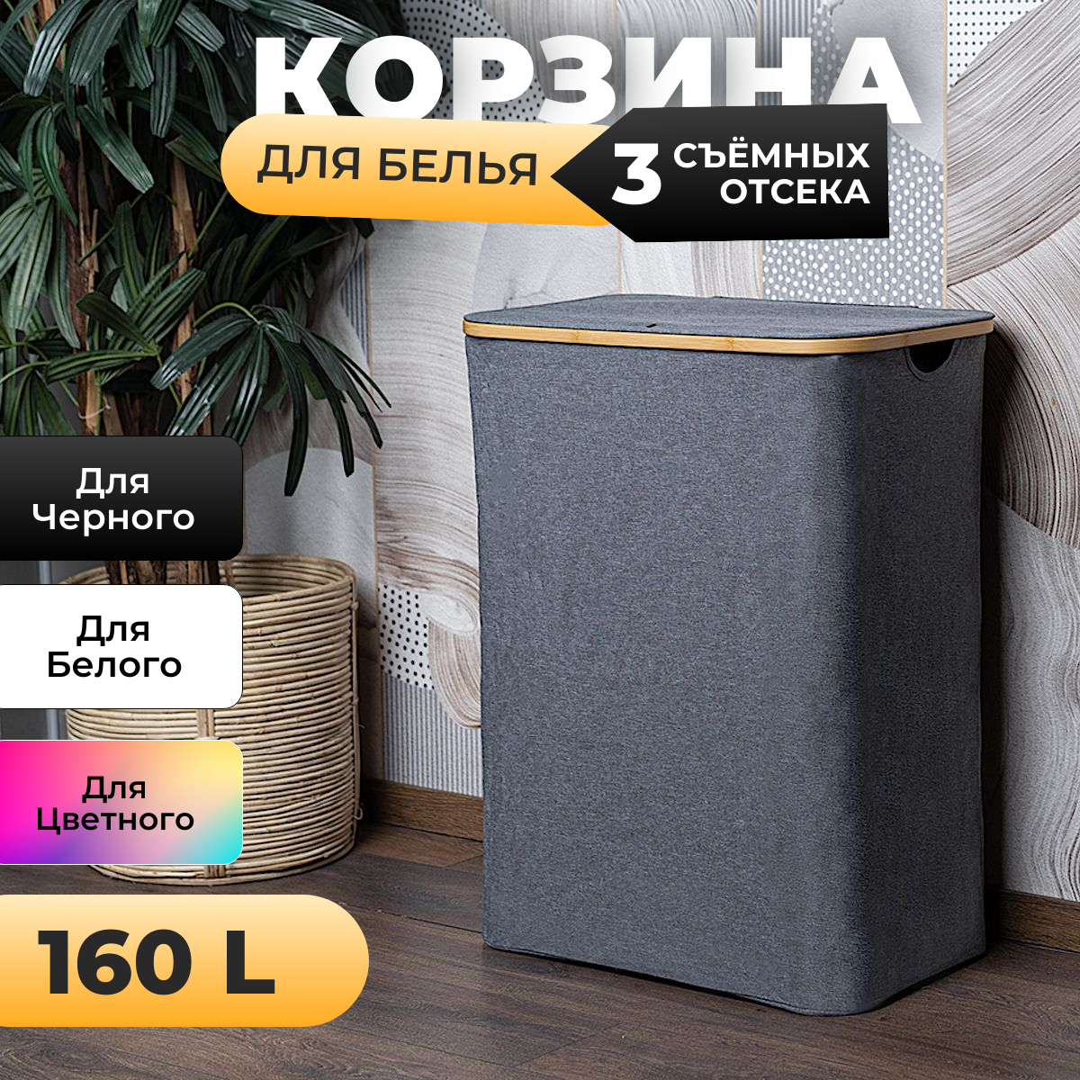 Купить HilZz Корзина для белья с крышкой в ванную комнату на 160 литров