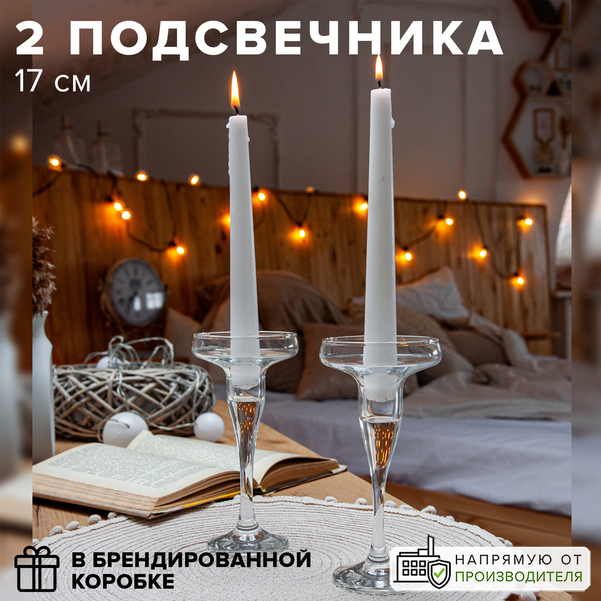 Подсвечники для свечей, стеклянные, прозрачные, набор 2 шт., Pasabahce