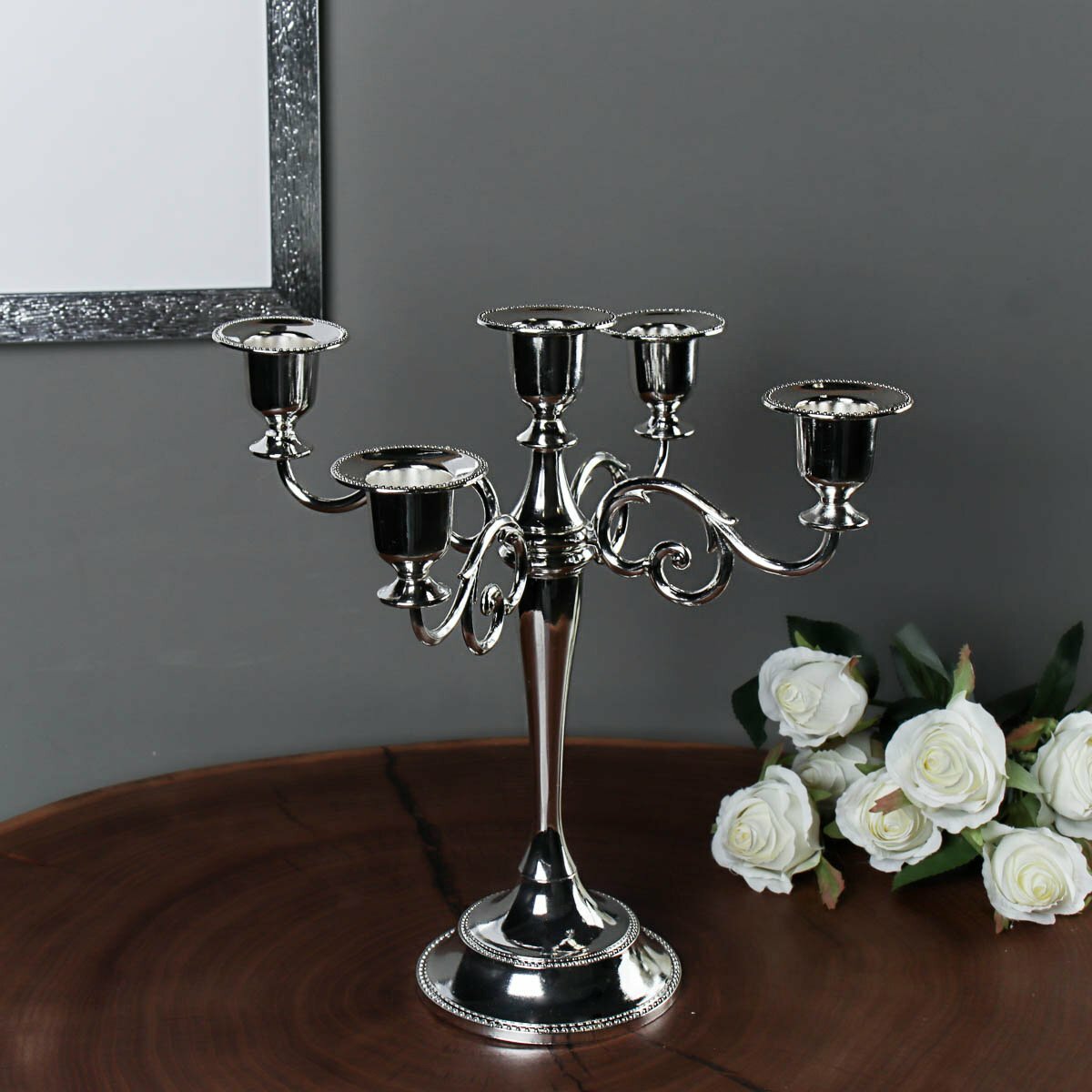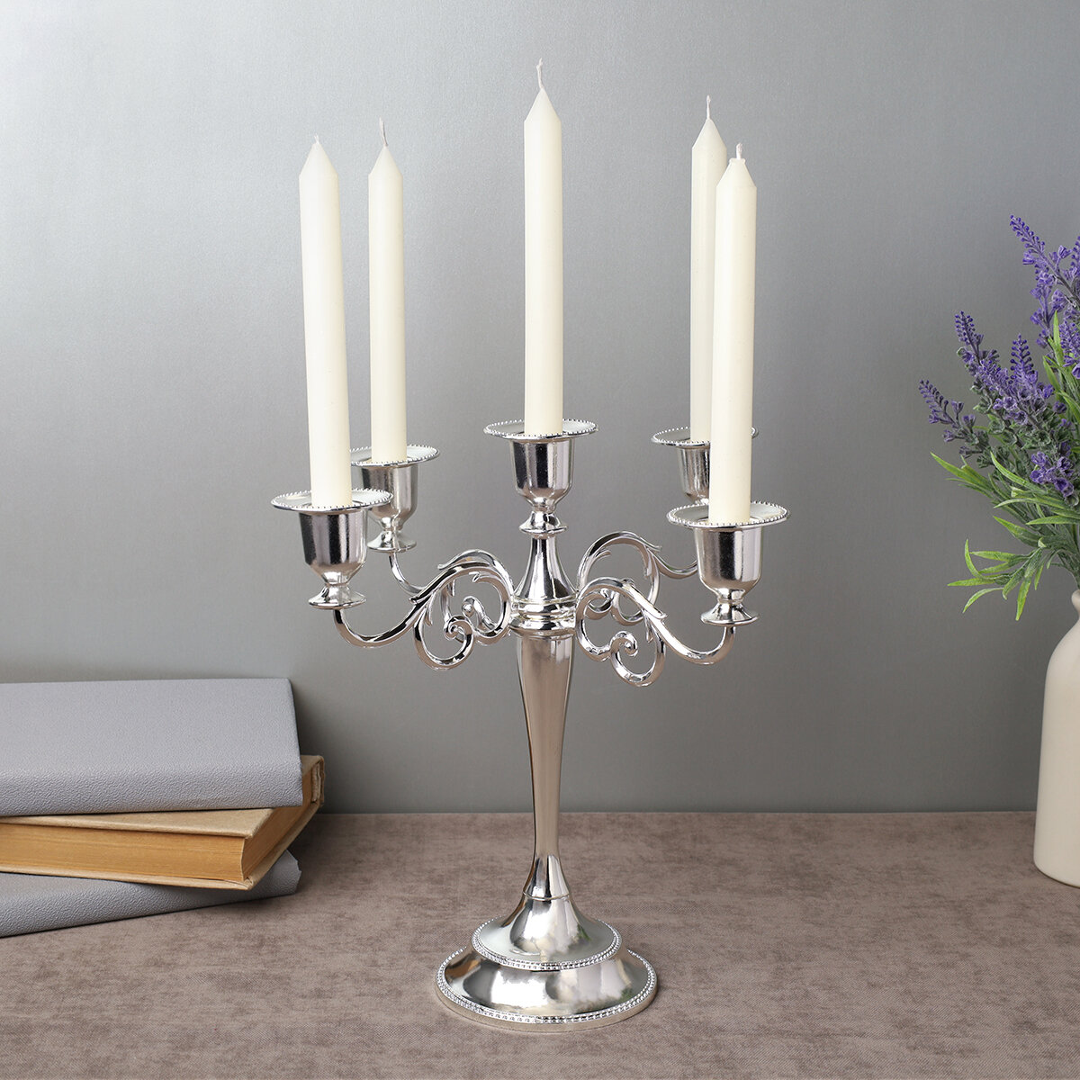 Купить Подсвечник "Канделябр" на 5 свечей, 25см, серебро, без свечи, металл, GALEONTRADE