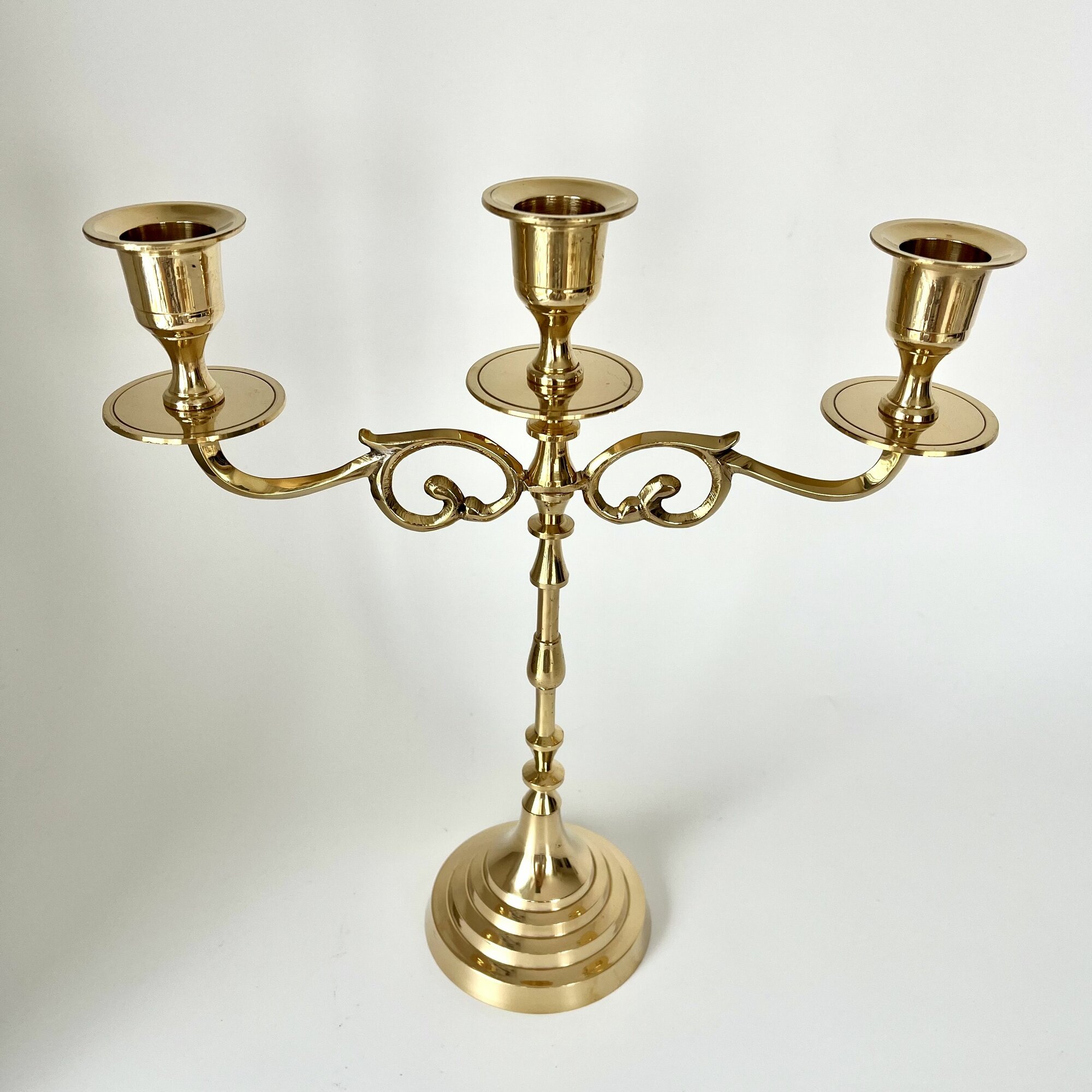Подсвечник (канделябр) латунный трёхрожковый на 3 свечи,19х13х9см, Индия, золотистого цвета