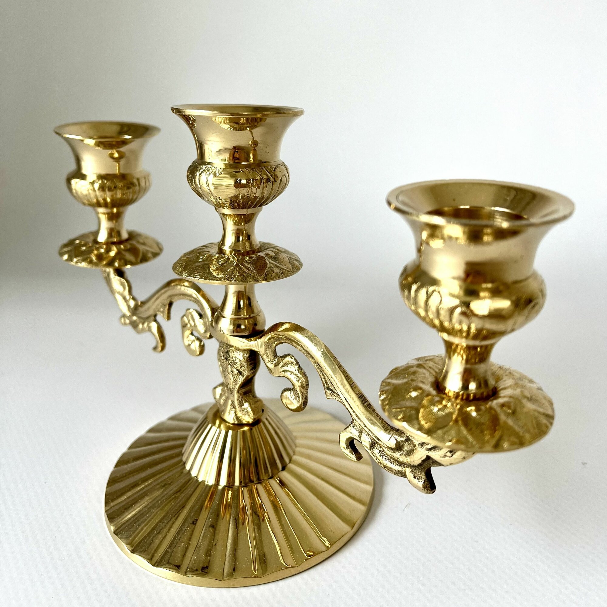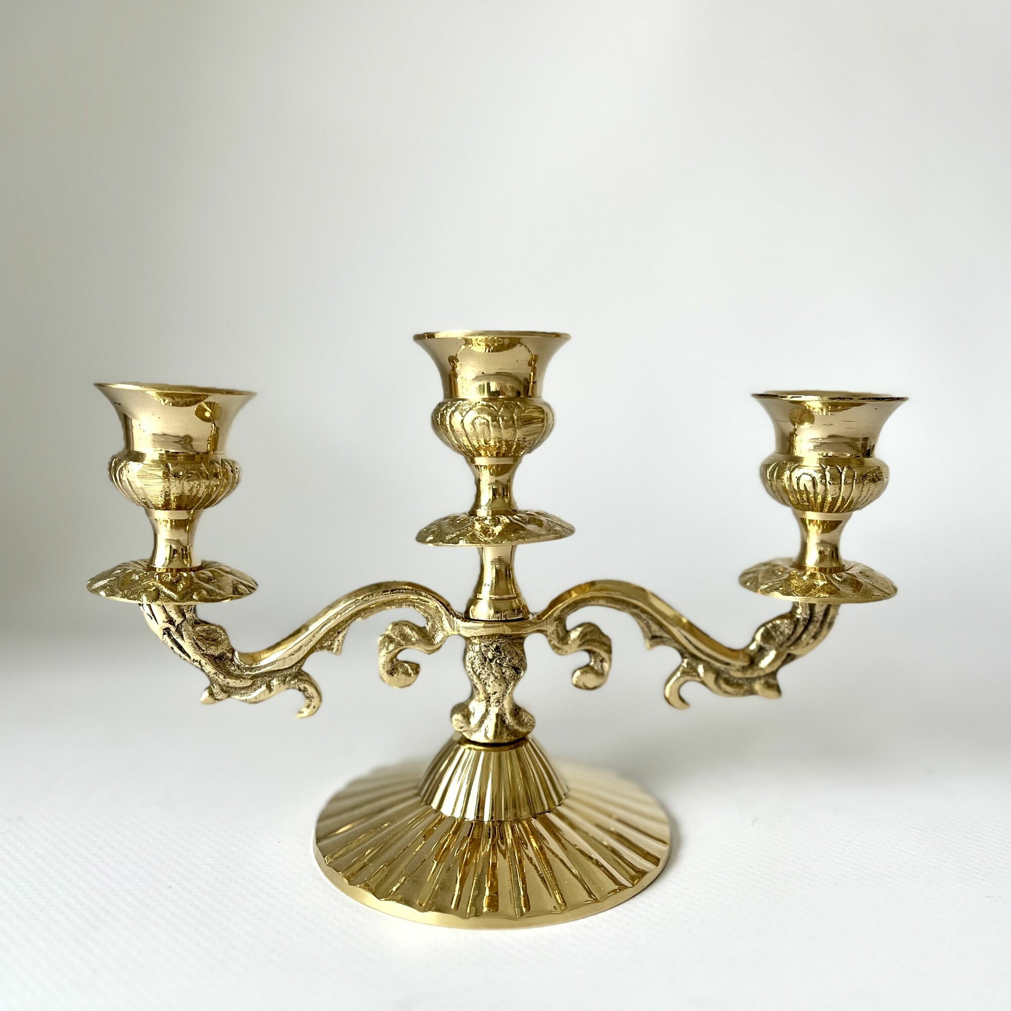Купить Подсвечник (канделябр) латунный трёхрожковый на 3 свечи,19х13х9см, Индия, золотистого цвета