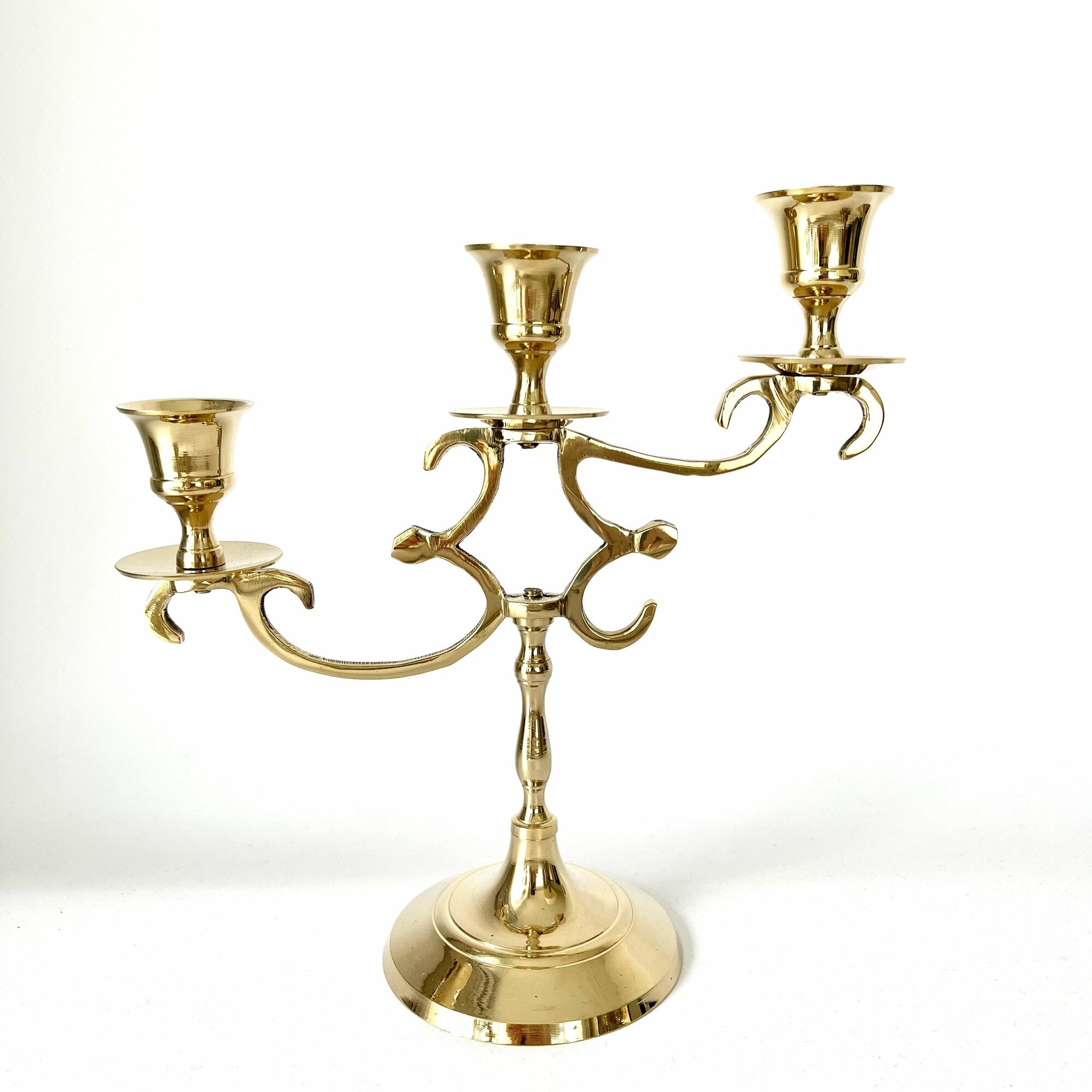 Купить Подсвечник латунный на 3 свечи, канделябр трёхрожковый золотистого цвета, 23х22х9см, Индия