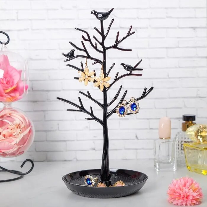 Купить Подставка для украшений "Птички на дереве", 15,5 х 15,5 х 32 см, цвет чёрный