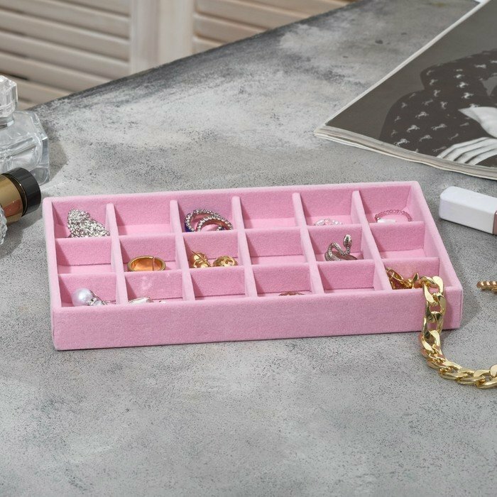 СохранитьПодставка для украшения 18 ячеек, флок, 21×12,3×2,5 см, цвет розовый интересное: