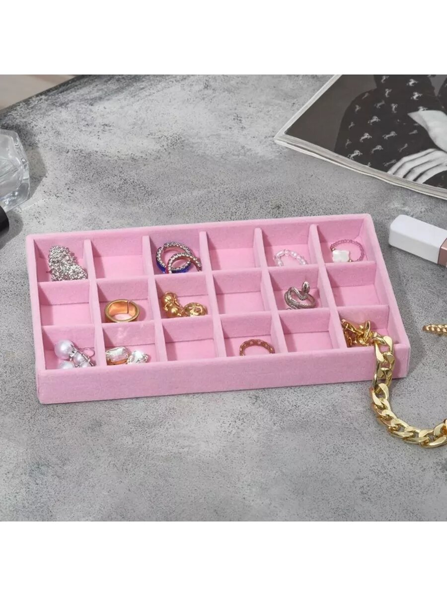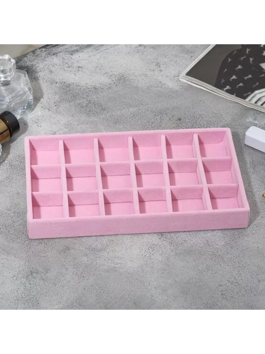 Купить Подставка для украшения 18 ячеек, флок, 21×12,3×2,5 см, цвет розовый