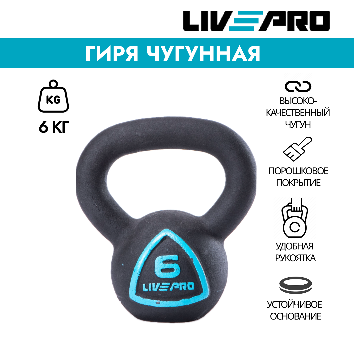 Гиря чугунная LivePro, вес 6 кг интересное: