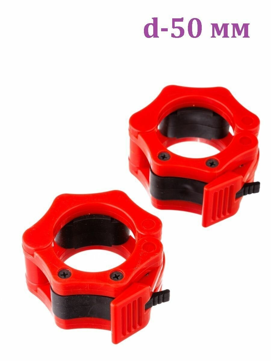 Замки на гриф с фиксатором d-50 мм Mr. Fox LockJaw быстросъемные, красные, пара интересное: