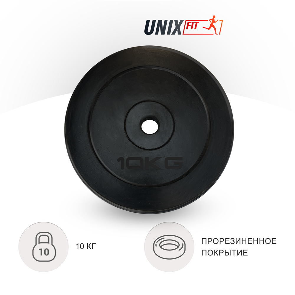 Диск для штанги/гантели UNIXFIT обрезиненный UNIX Fit 10 кг х 25 мм, черный