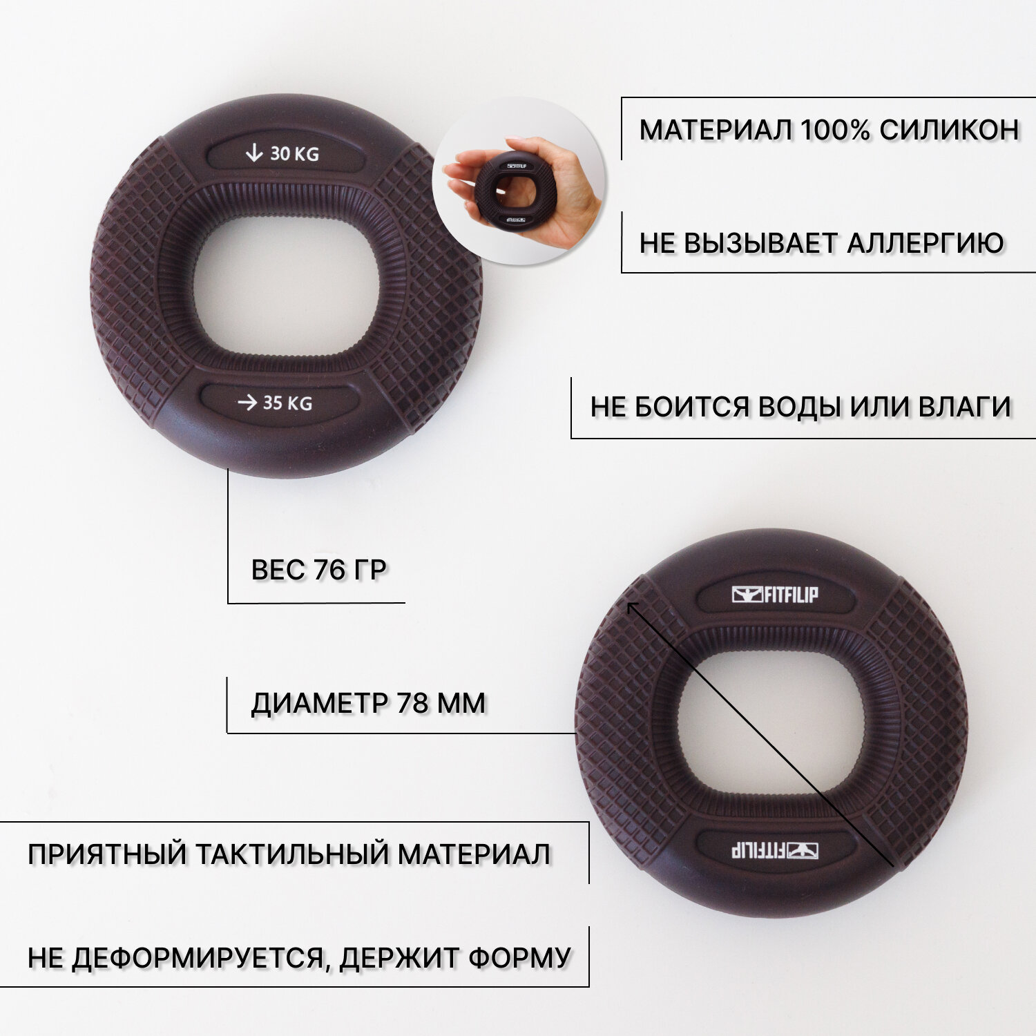 Ниже Вы можете прочитать отзывы на Эспандер кистевой силиконовый круглый для рук кольцо 30кг - 35кг, 1 шт, ознакомится с подробными характеристиками, посмотреть интересные обзоры и фотографии на Эспандер кистевой силиконовый круглый для рук кольцо 30кг - 35кг, 1 шт.