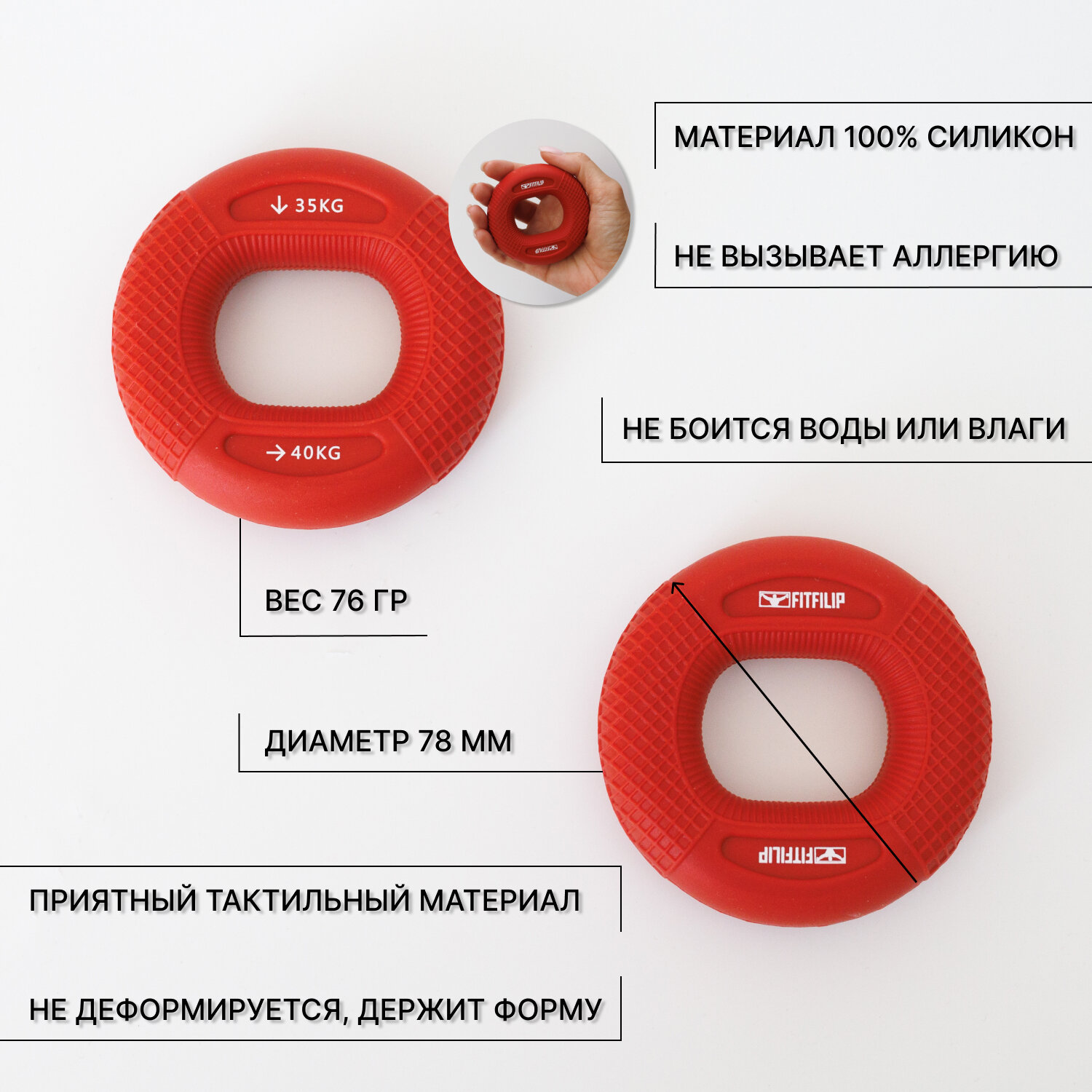 Ниже Вы можете прочитать отзывы на Эспандер кистевой силиконовый круглый для рук кольцо 35кг - 40кг, 1 шт, ознакомится с подробными характеристиками, посмотреть интересные обзоры и фотографии на Эспандер кистевой силиконовый круглый для рук кольцо 35кг - 40кг, 1 шт.