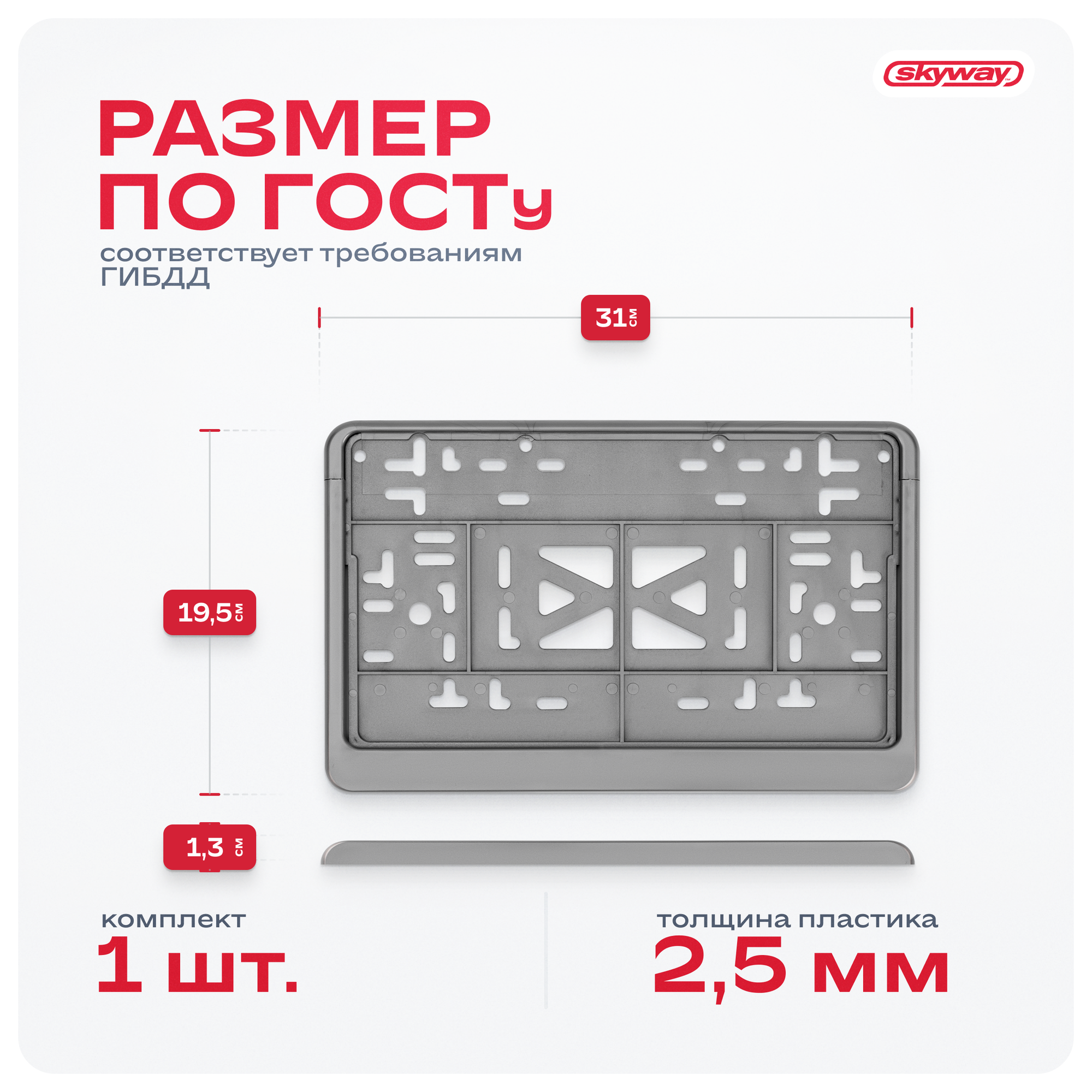 СохранитьРамка для автомобильного номера Skyway, пластмассовая 290x170мм, ГОСТ, с защелкой, серая, S04102010 интересное: