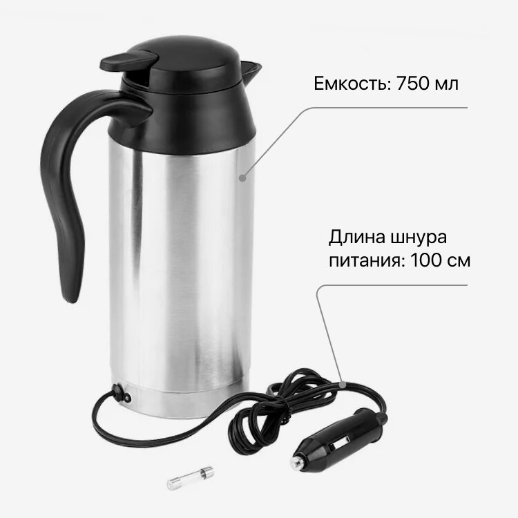 Чайник автомобильный от прикуривателя 12V, 120 Вт, 750 мл интересное: