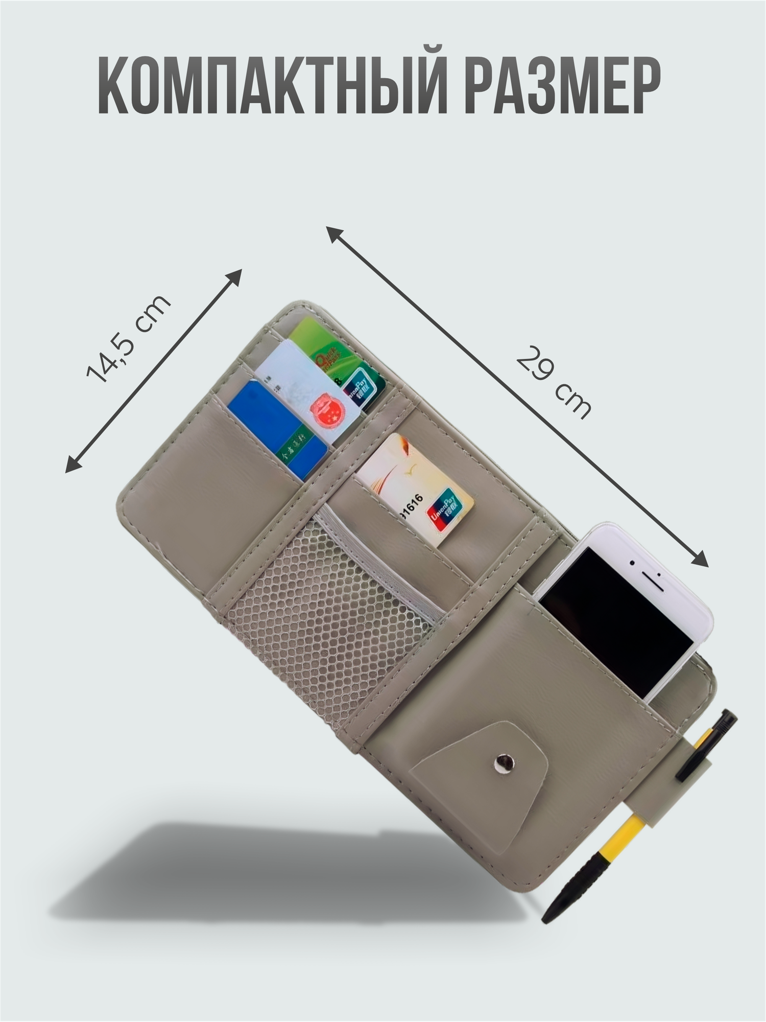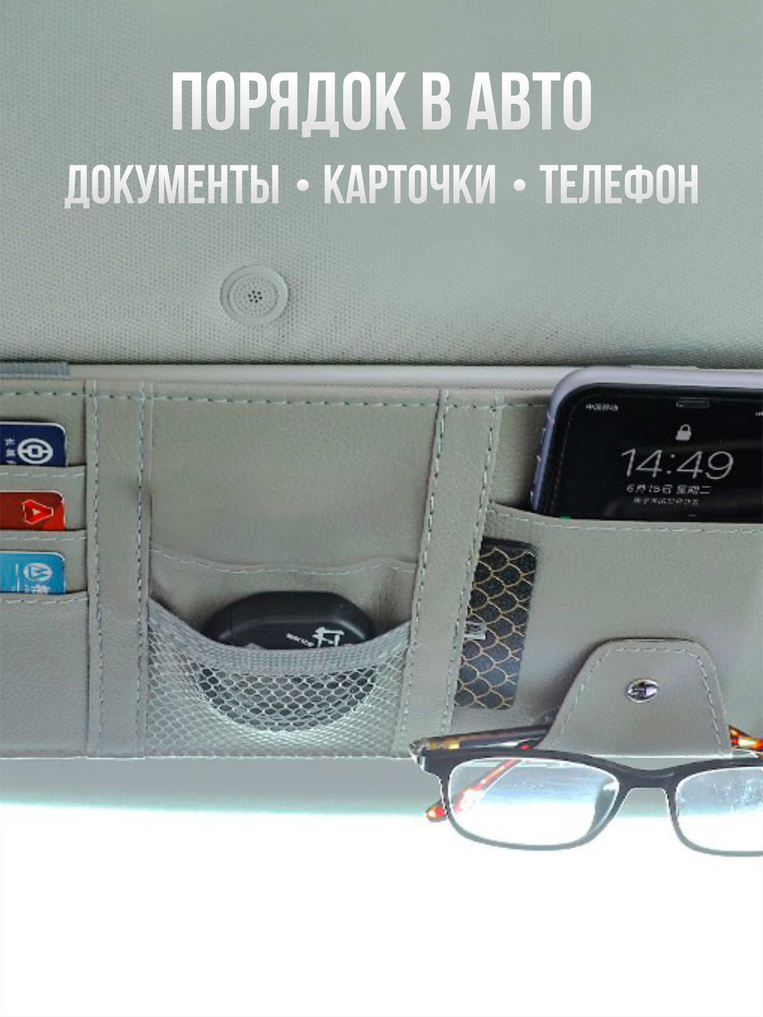 Органайзер подвесной для автомобиля на солнцезащитный козырек для документов, бежевый