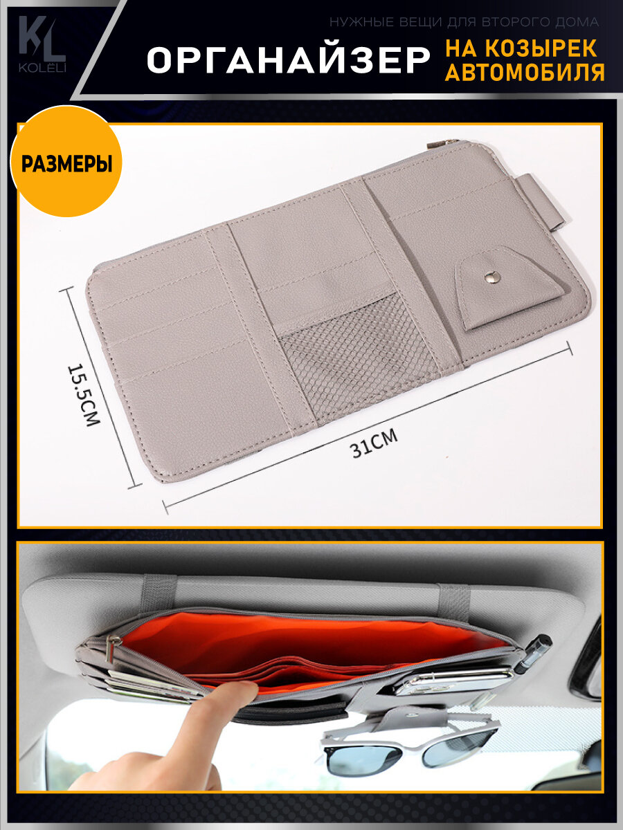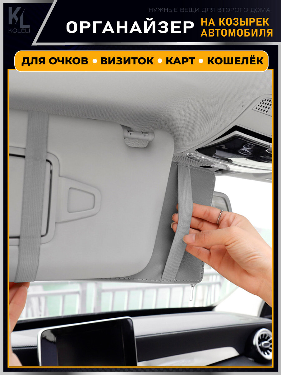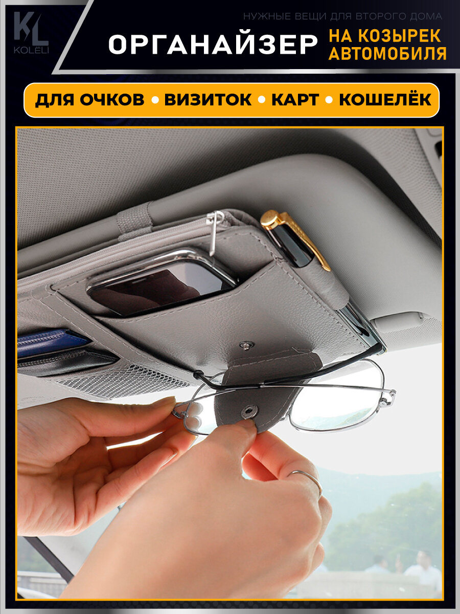 Купить KoLeli / Органайзер на козырек автомобиля, держатель для очков, хранение вещей в машине, серый
