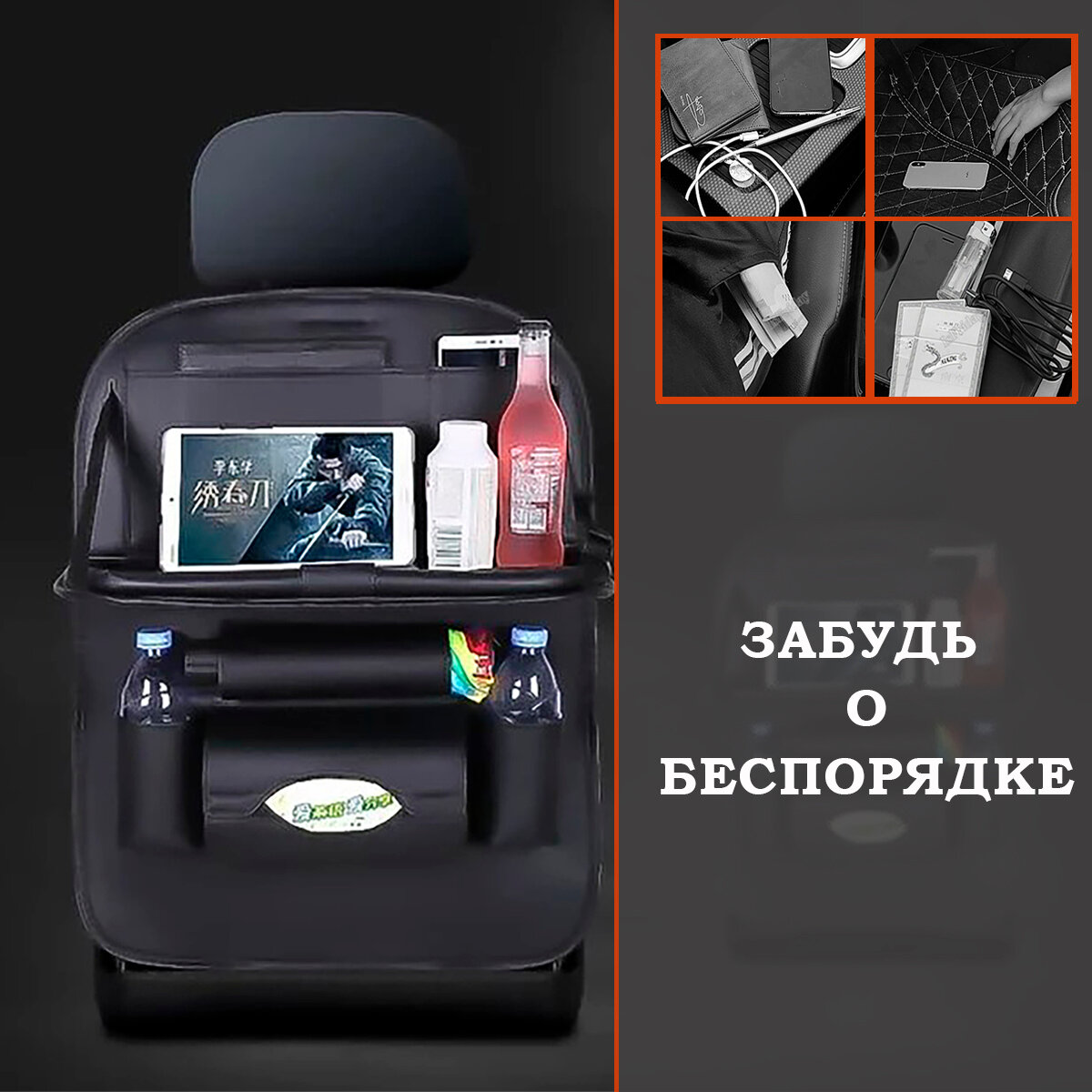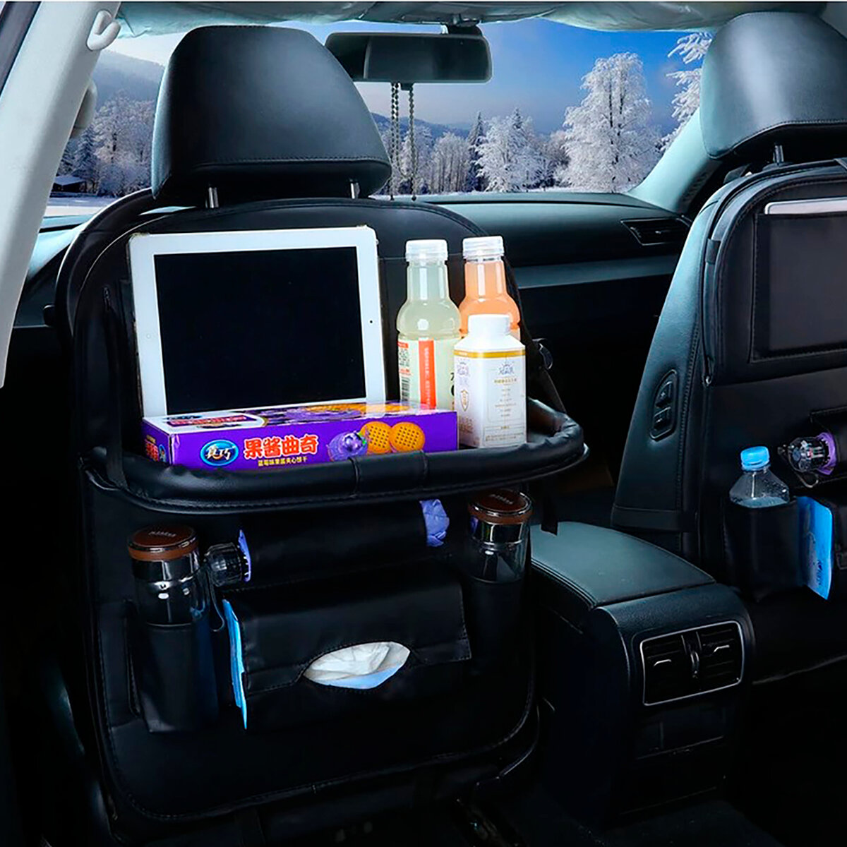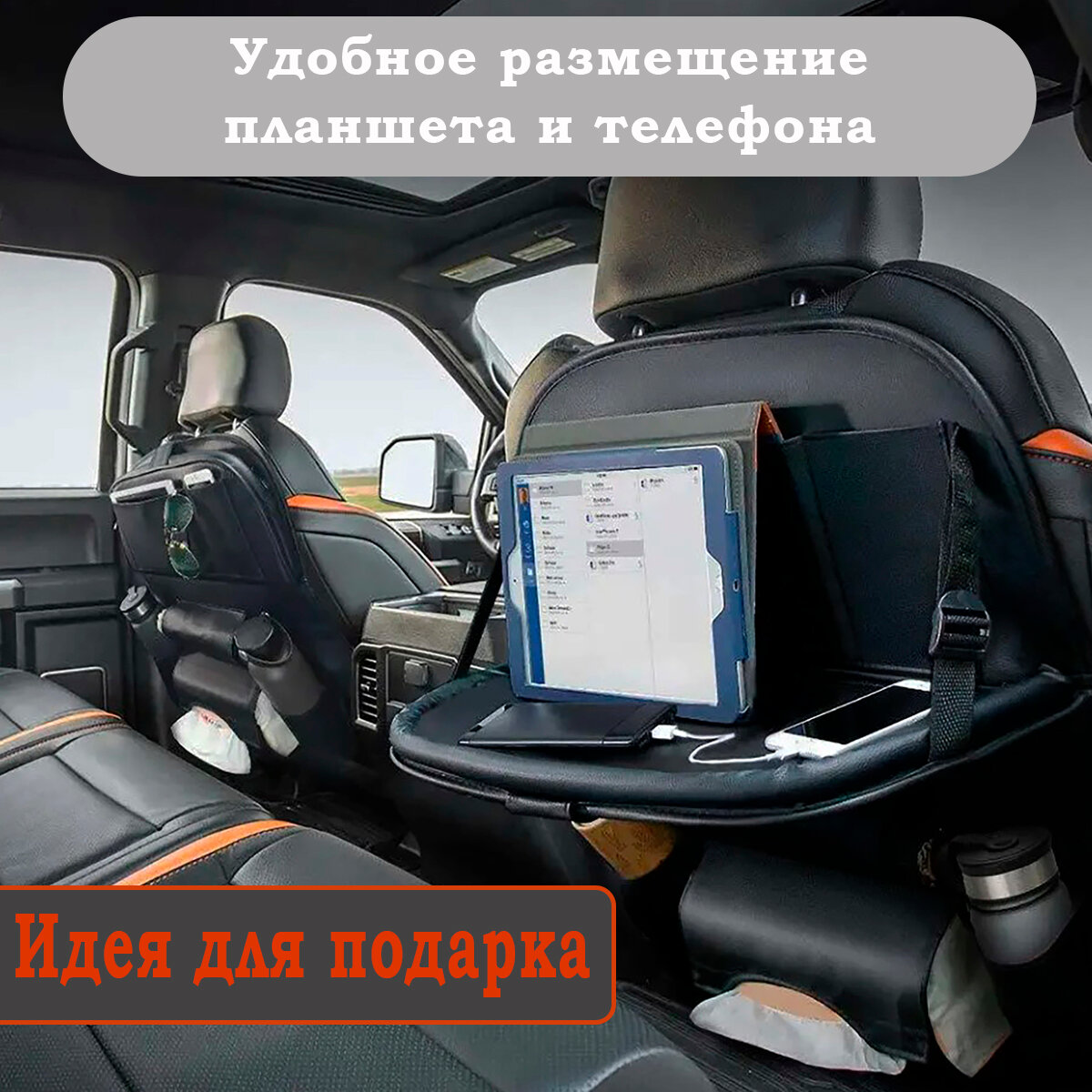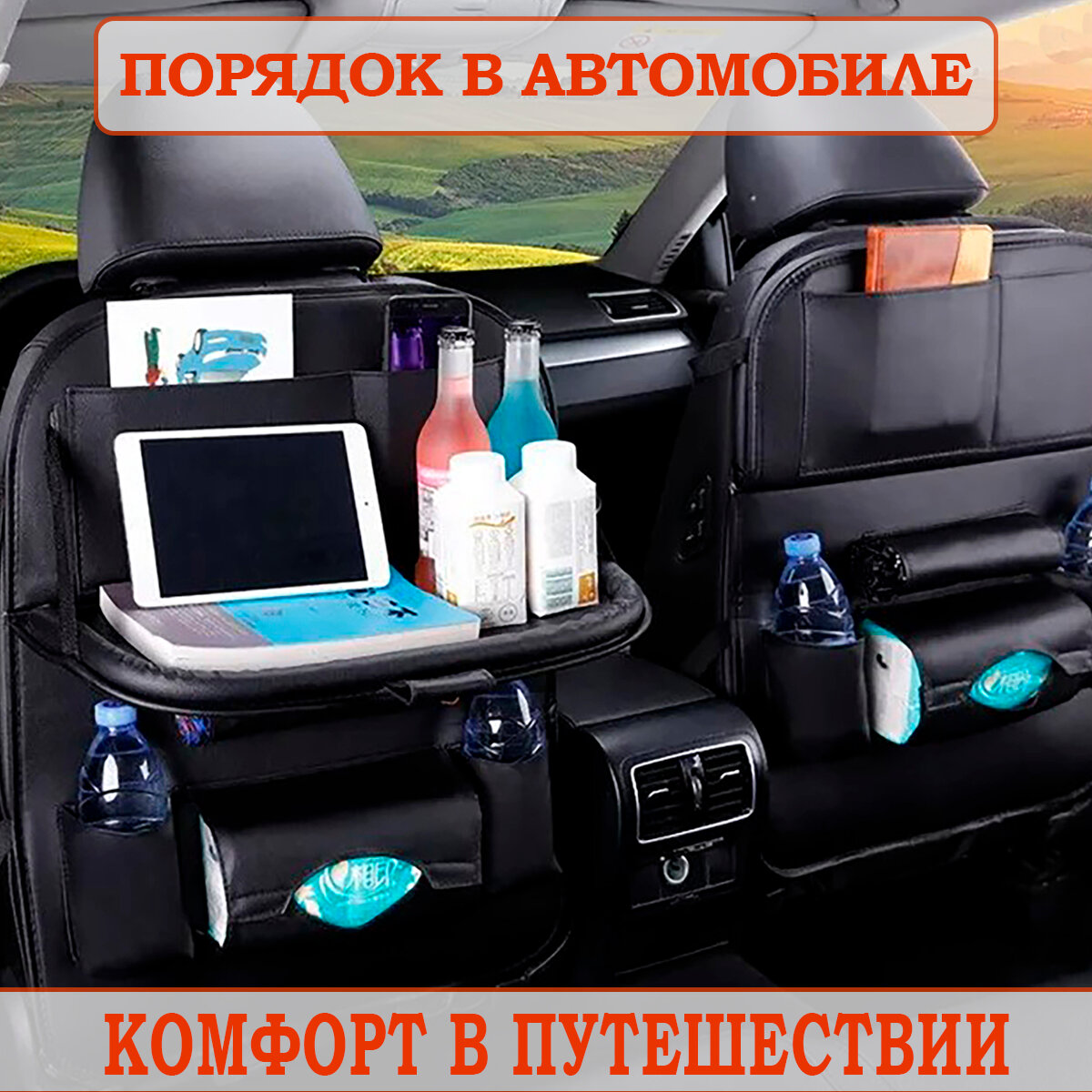 Многофункциональный органайзер для спинки автомобильного сиденья с откидным столиком интересное: