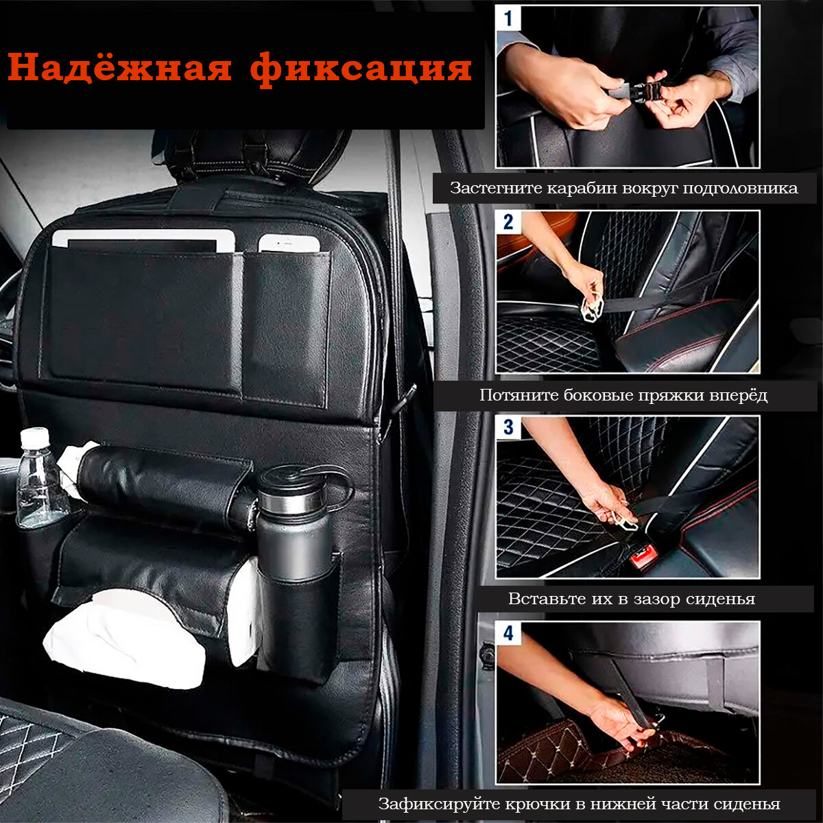 Органайзер на спинку сиденья автомобиля незапинайка Цвет Черный