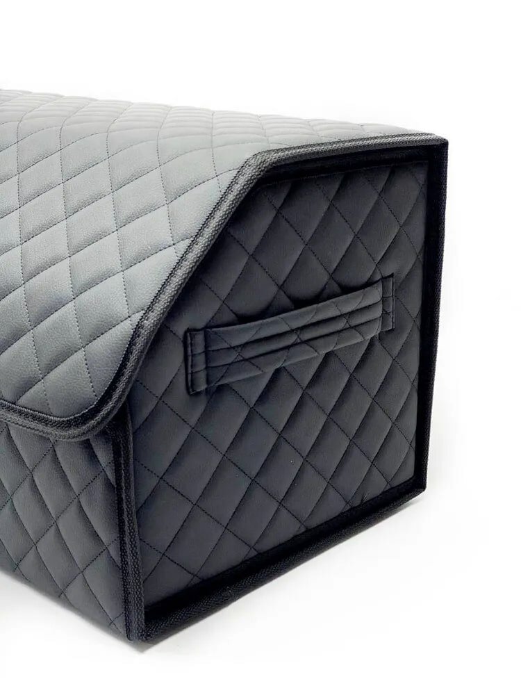 Саквояж в багажник автомобильный эко кожа черная синий ромб, объем 45 л