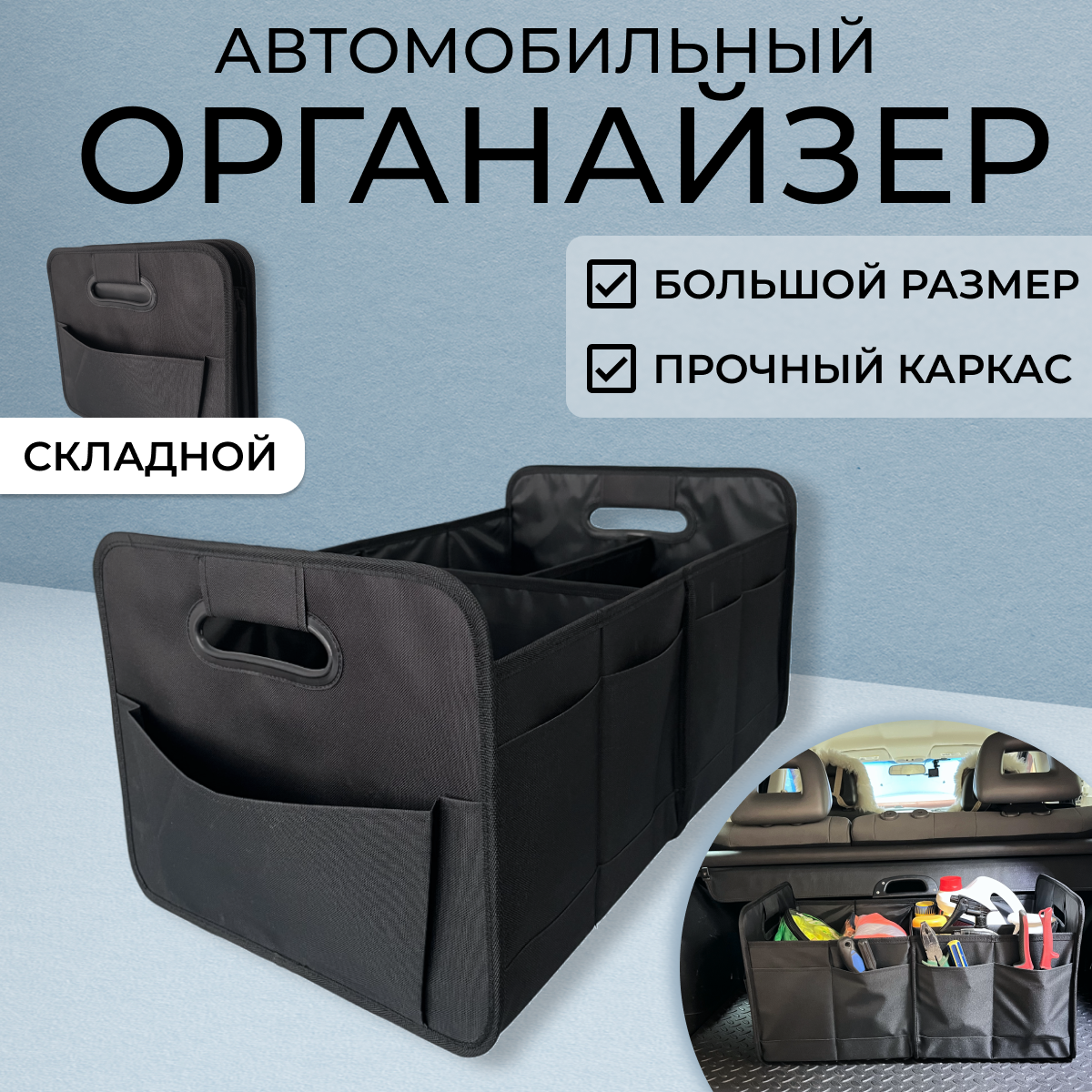 Органайзер в багажник автомобиля складной 68 литров / Универсальный автомобильный органайзер для хранения в машину интересное: