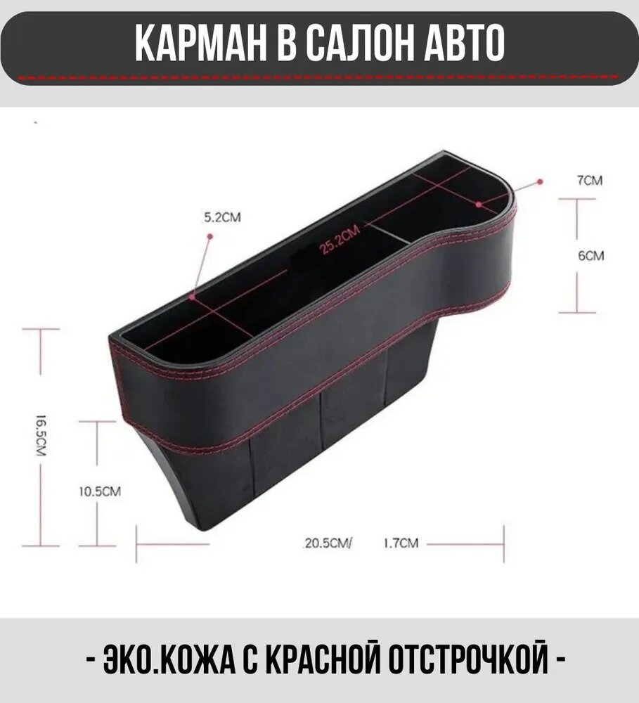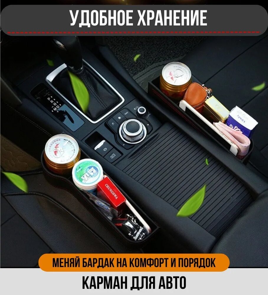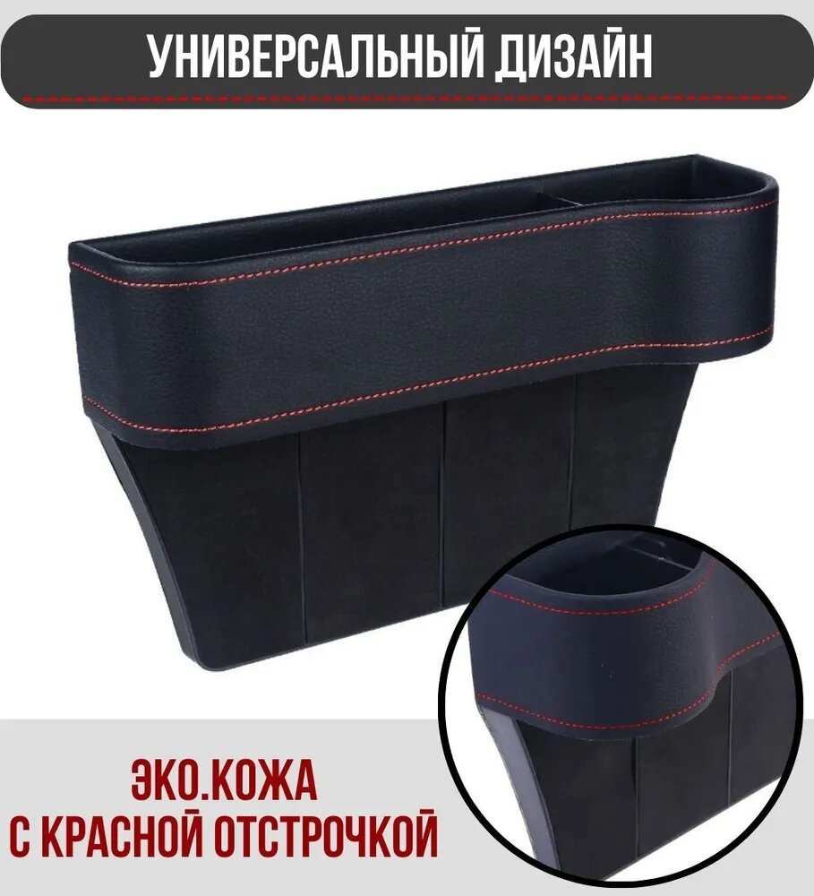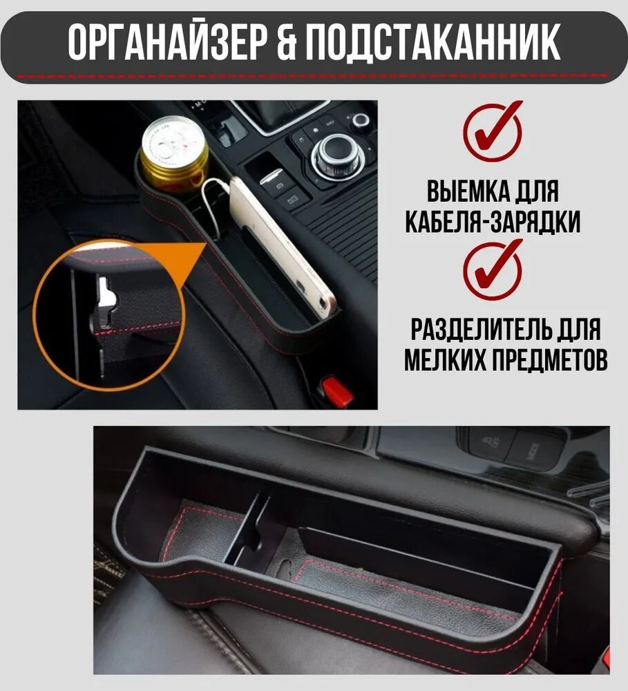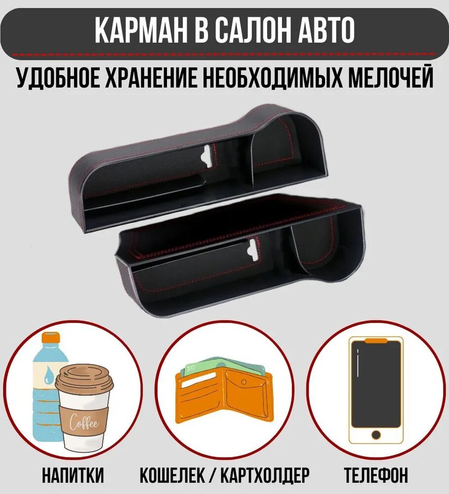 Дорожный карман между сиденьями автомобиля с подстаканником / черный цвет красная строчка / комплект 2 шт. интересное: