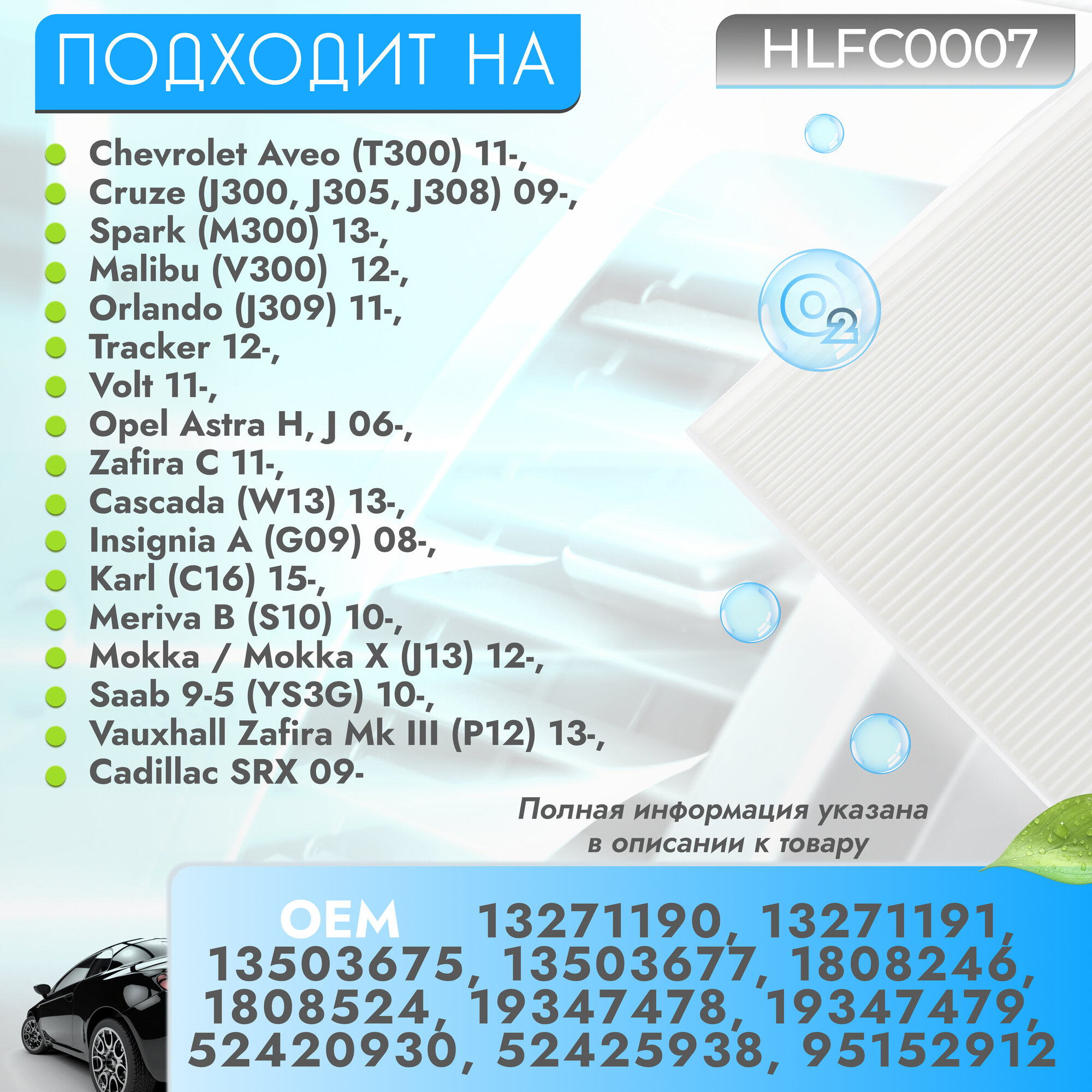 Салонный фильтр для автомобиля Chevrolet Aveo (T300) 11-, Cruze (J300, J305, J308) 09-, Spark (M300) 13-, Opel Astra H, J 06-, Zafira C 11- интересное: