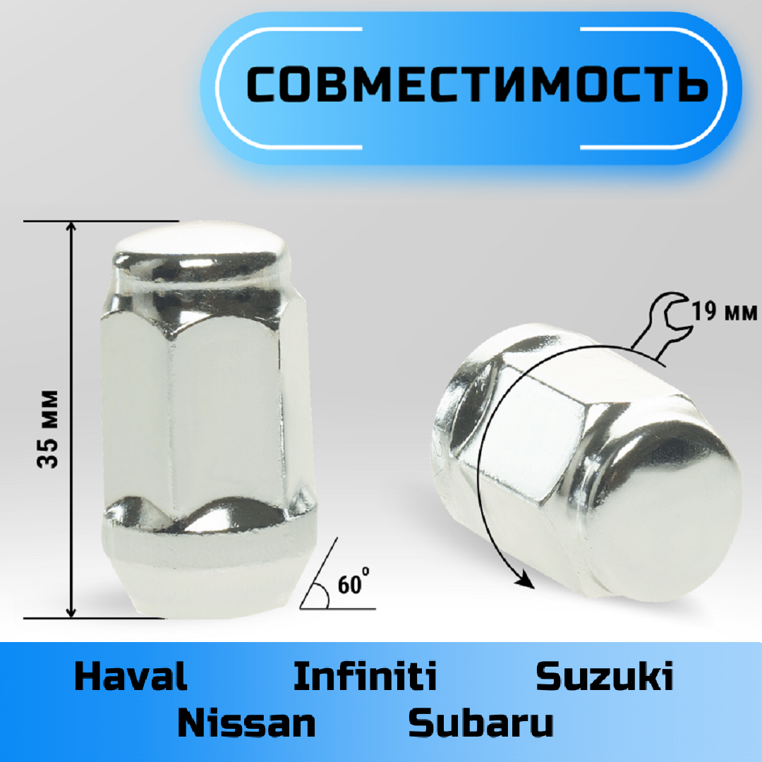 Гайки колесные М12х1,25 конус, высота 34мм, с выступом, закрытая, ключ 19мм, хром интересное: