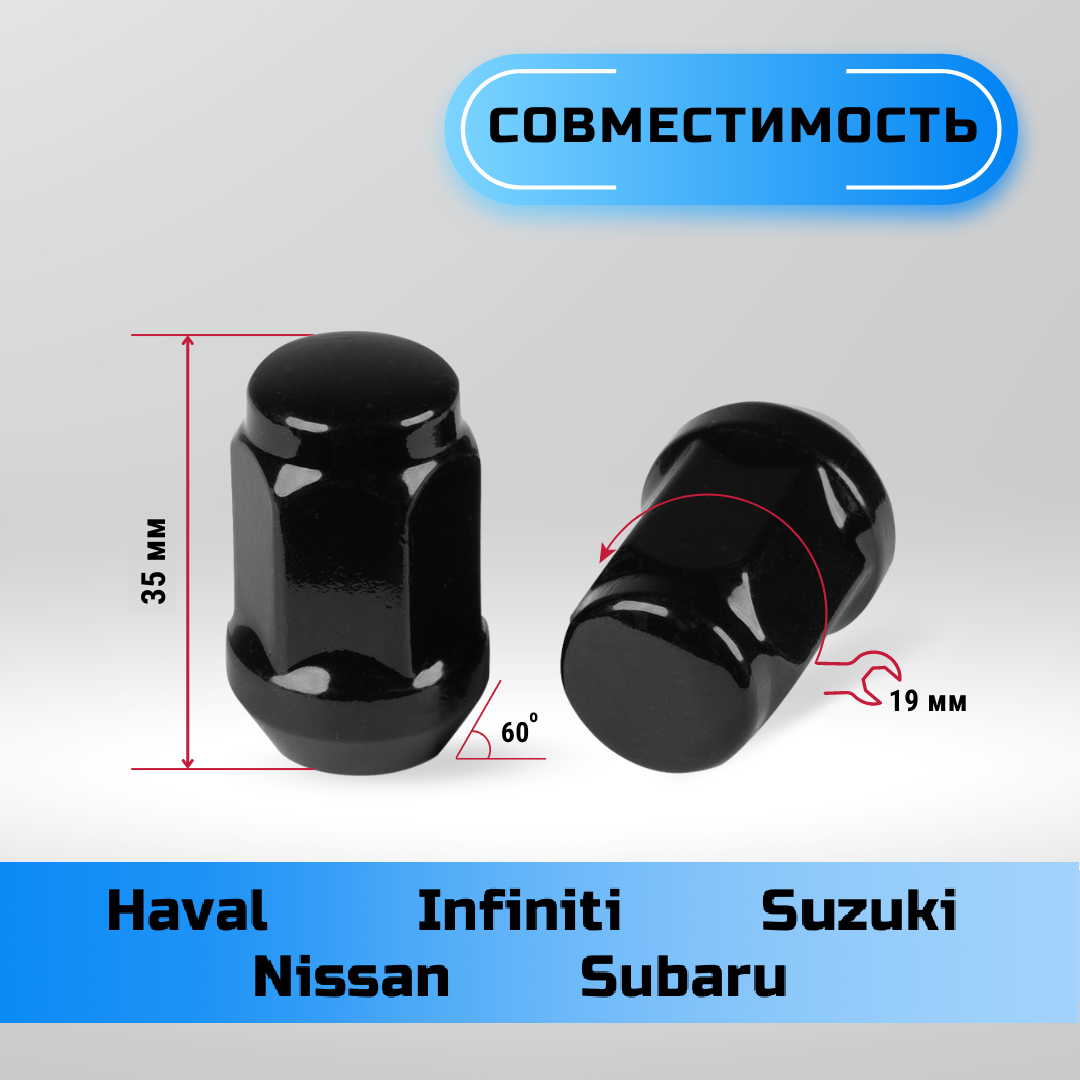 Гайки колесные М12х1,25 конус, высота 34мм, с выступом, закрытая, ключ 19мм, черные интересное: