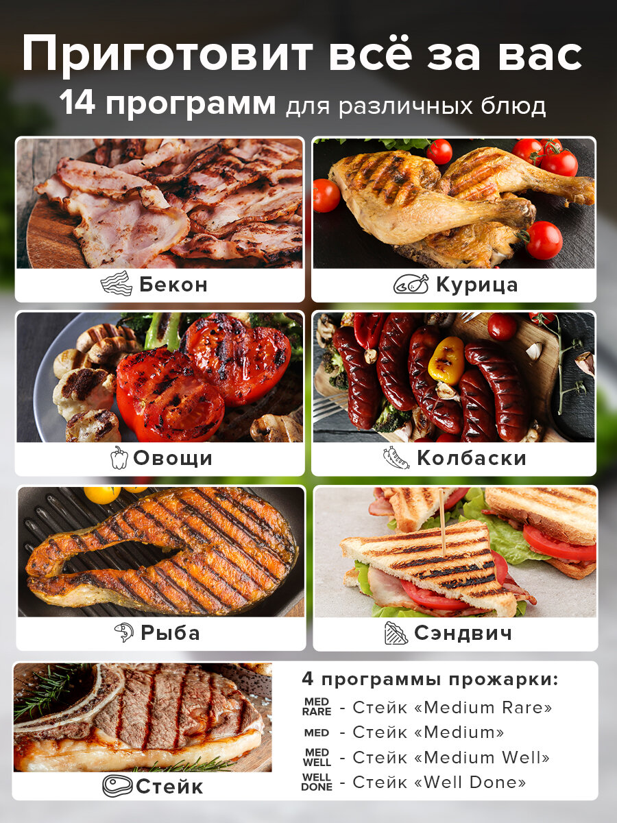 Гриль электрический Libhof GL-2000B / термощуп / 14 автопрограмм интересное: