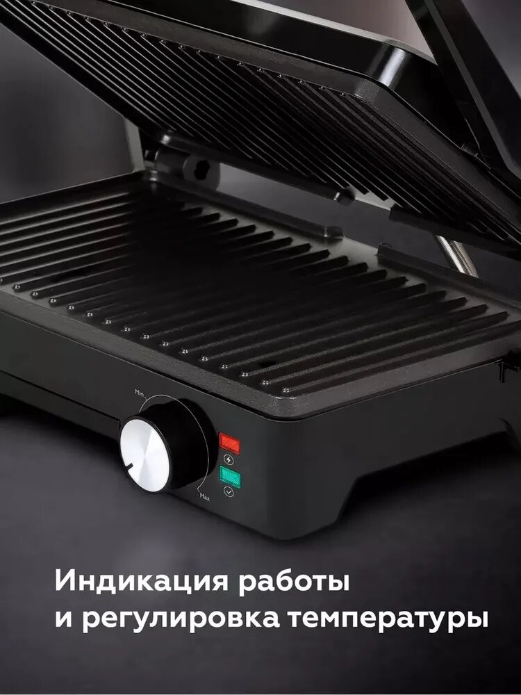 | Особенности | антипригарное покрытие / крышка / поддон для сбора жира / регулировка высоты верхней панели |