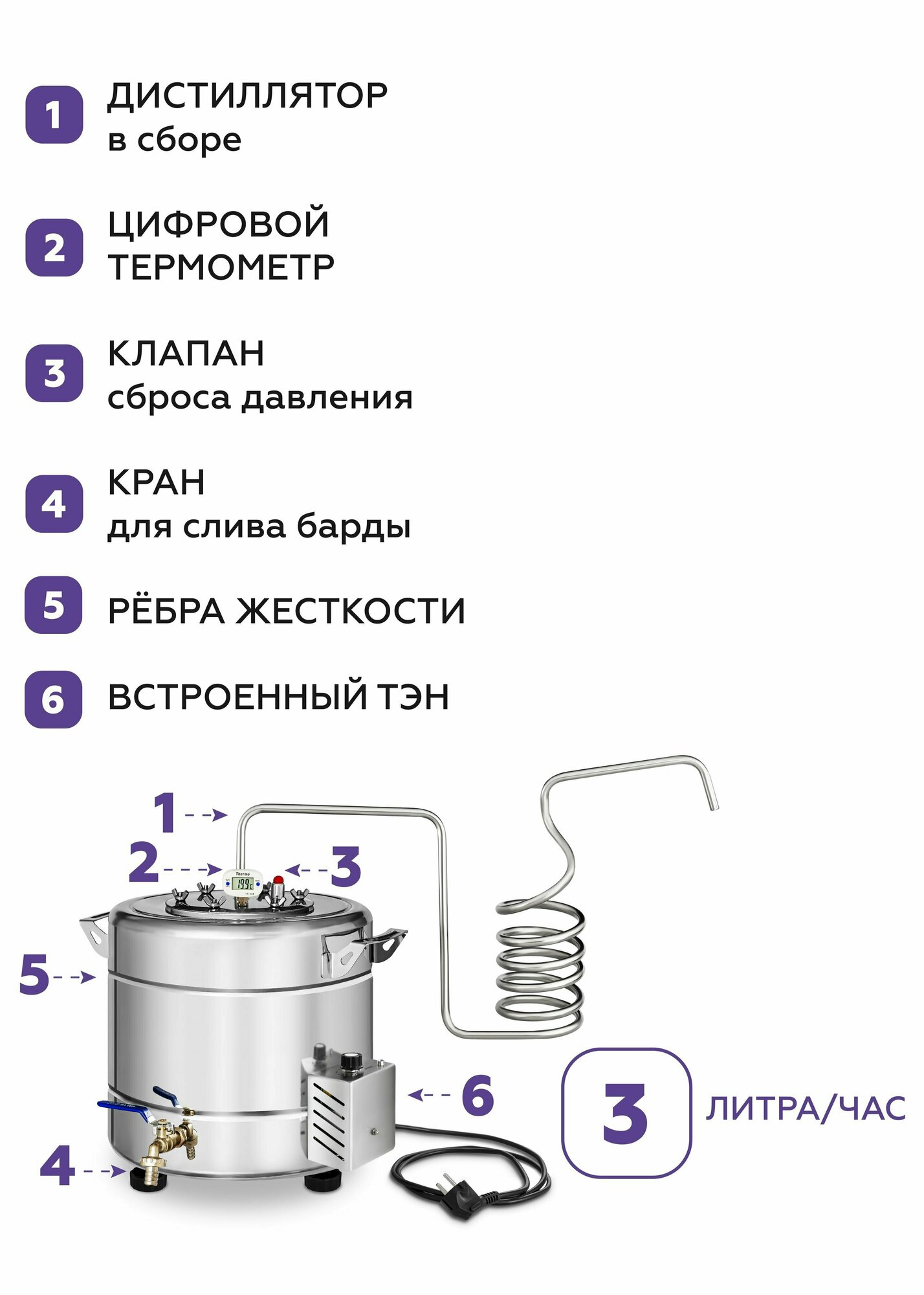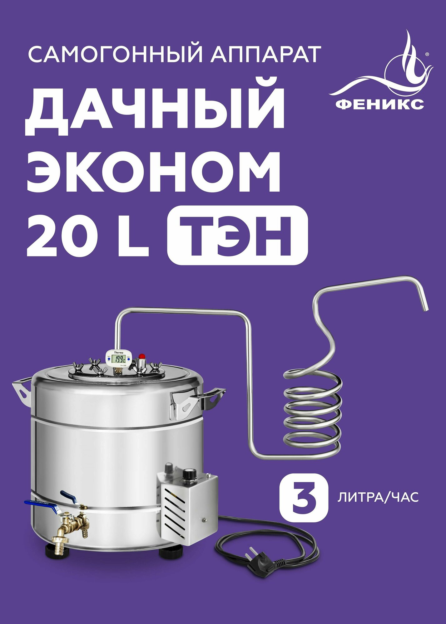 Самогонный аппарат Феникс "Дачный эконом" 20 л с ТЭН непроточного типа, дистиллятор интересное: