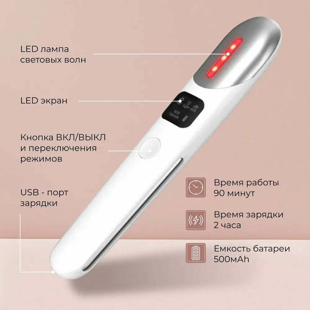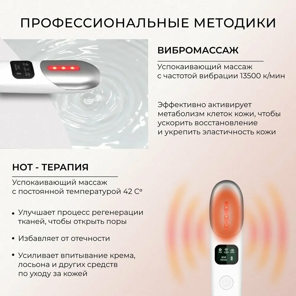 Купить Массажер для кожи вокруг глаз и лица микротоковый, электрический лимфодренажный вибромассажер, EMS и светотерапия,белый