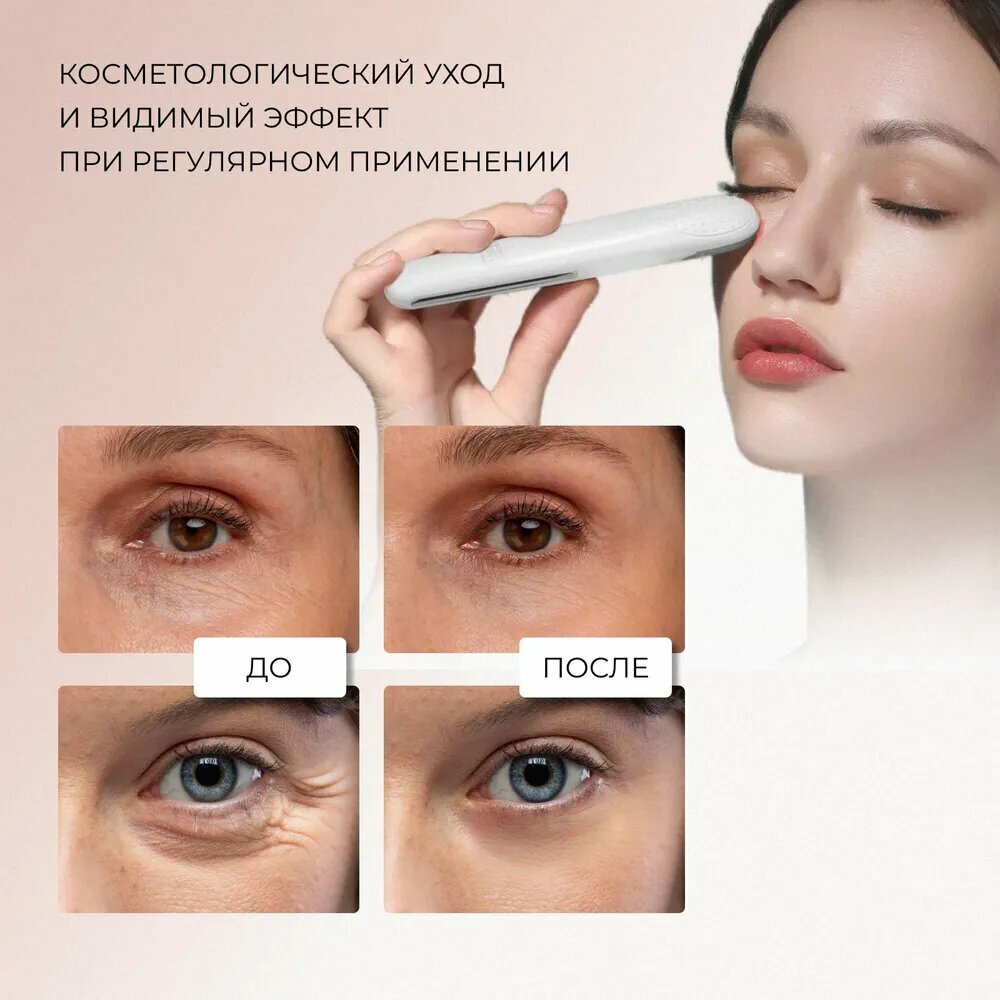 Массажер для кожи вокруг глаз и лица микротоковый, электрический лимфодренажный вибромассажер, EMS и светотерапия,белый интересное:
