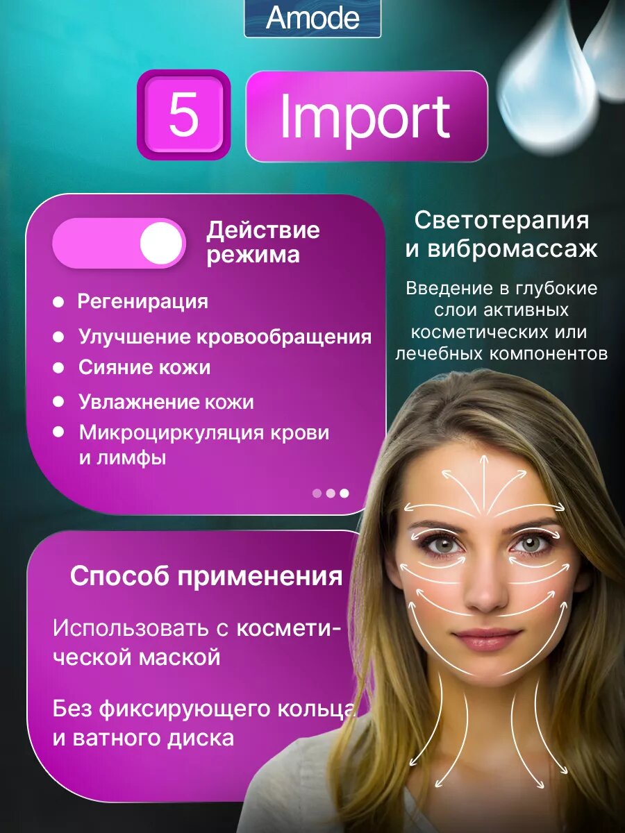 | Назначение | антивозрастной уход / лечение акне / массаж / нанесение средств по уходу / очищение / пилинг / увлажнение / усиление действия косметических средств |