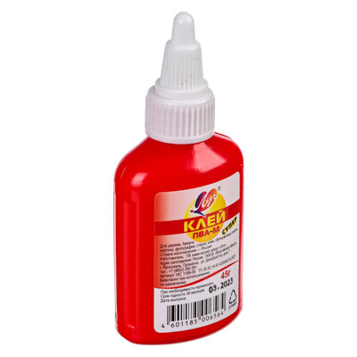 Клей ПВА-М канцелярский универсальный, 45 г, в красном флаконе, Луч