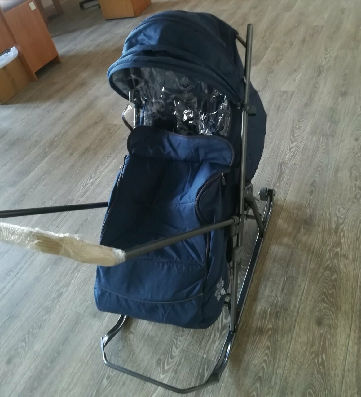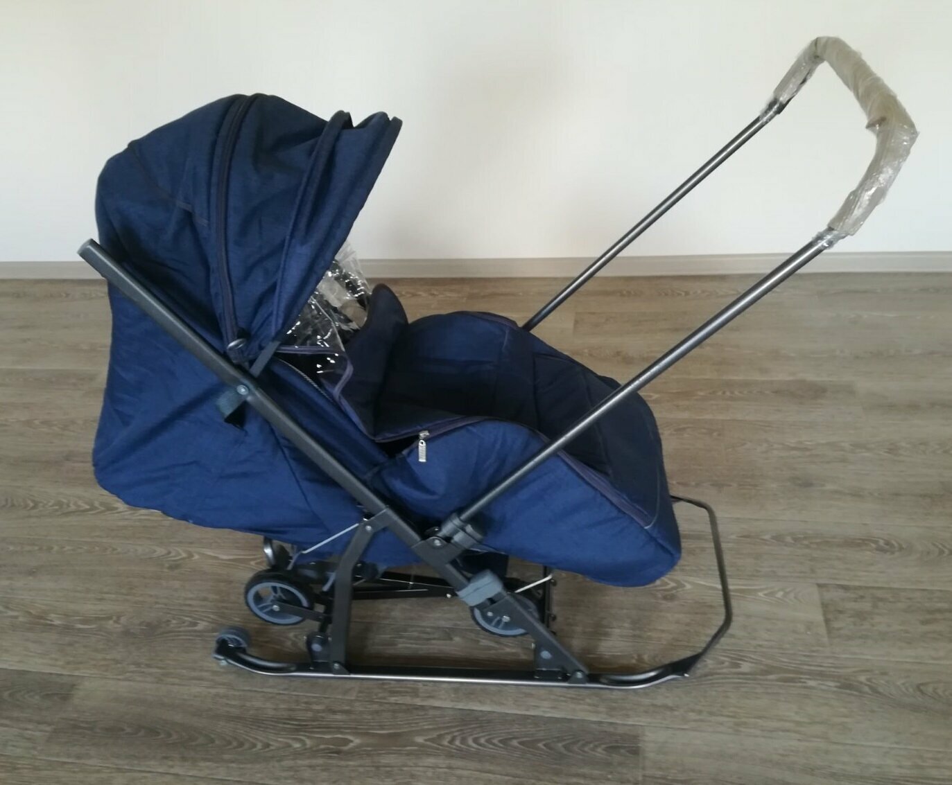 Санки коляска Galaxy Snow kids 3-3С джинс темно-синий интересное: