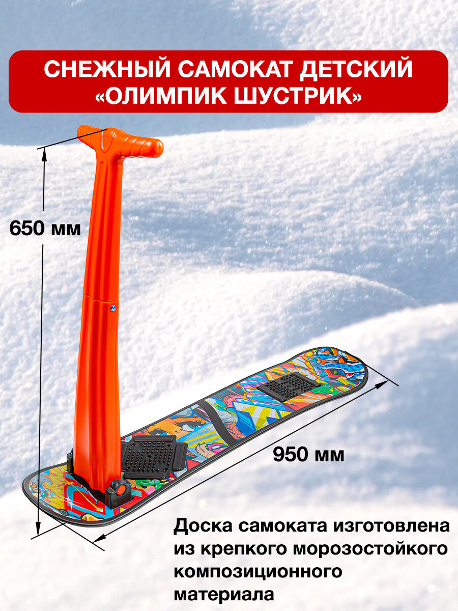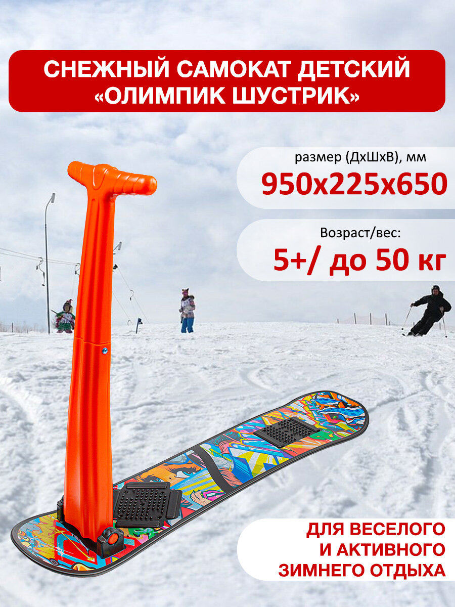 Снегокат с ручкой детский Шустрик для мальчика и девочки / снежный самокат трюковой