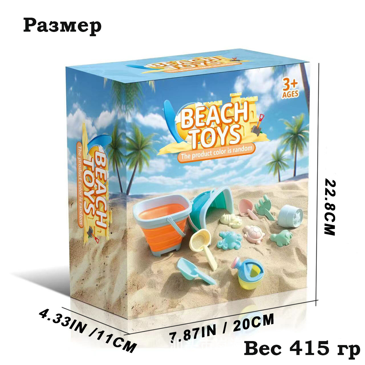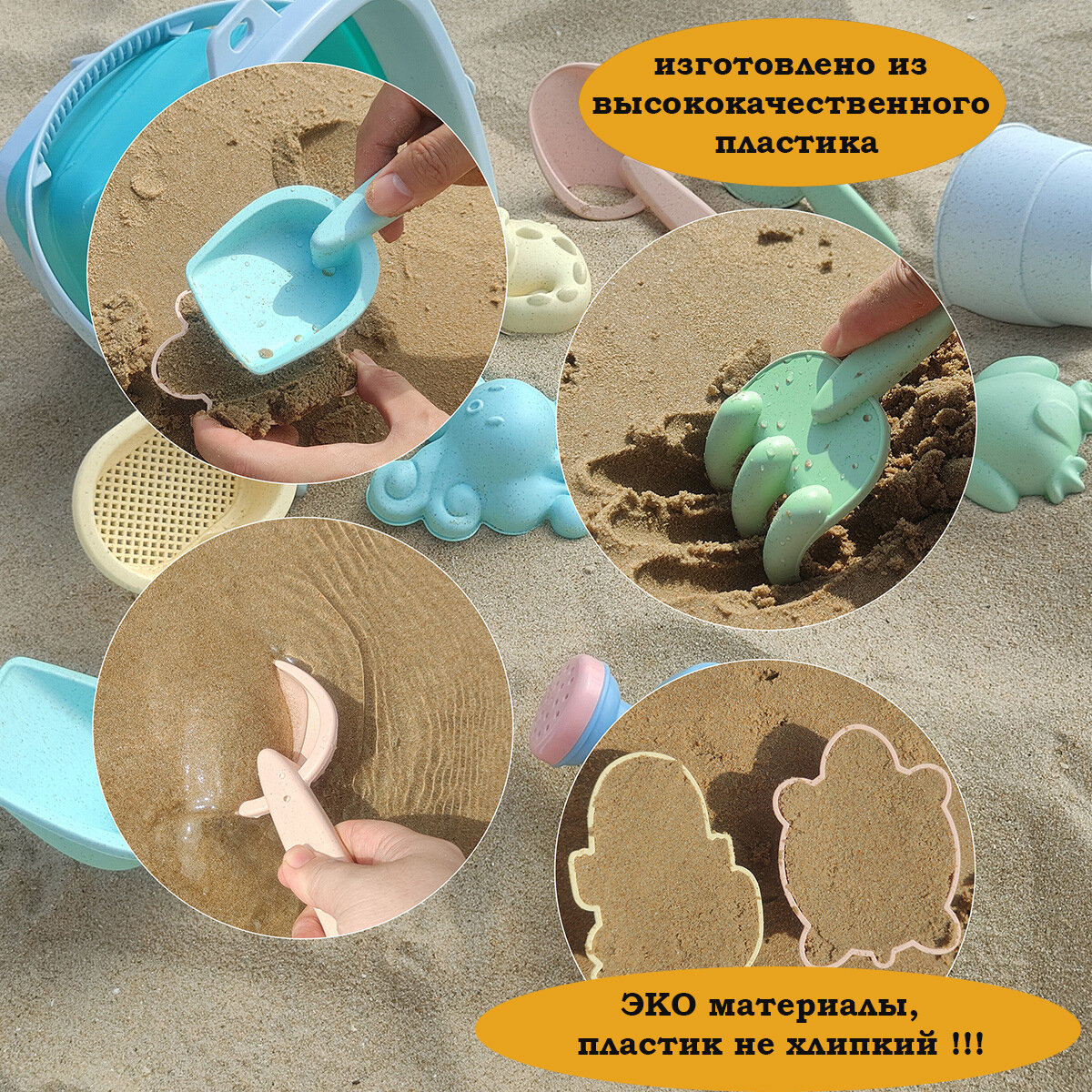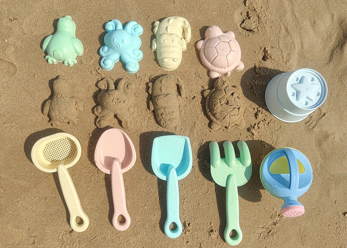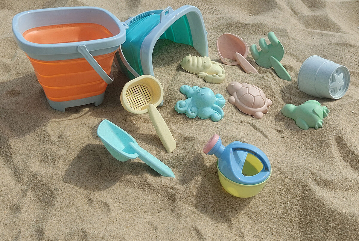 Формочки детские для песка со складным голубым ведерком. Набор пляжных игрушек. интересное: