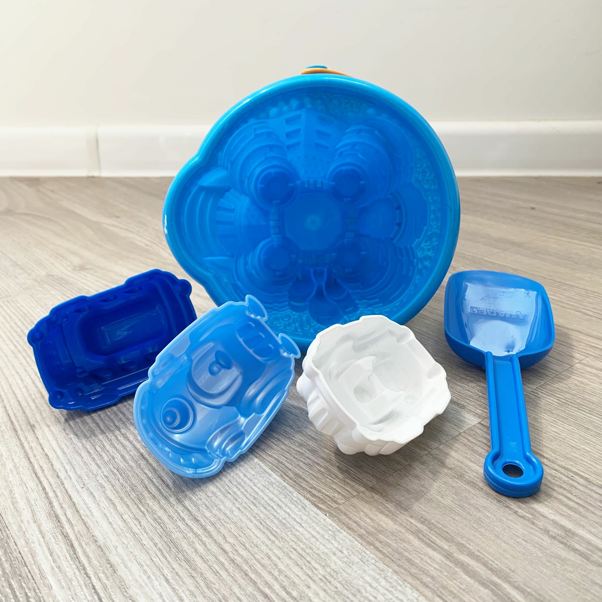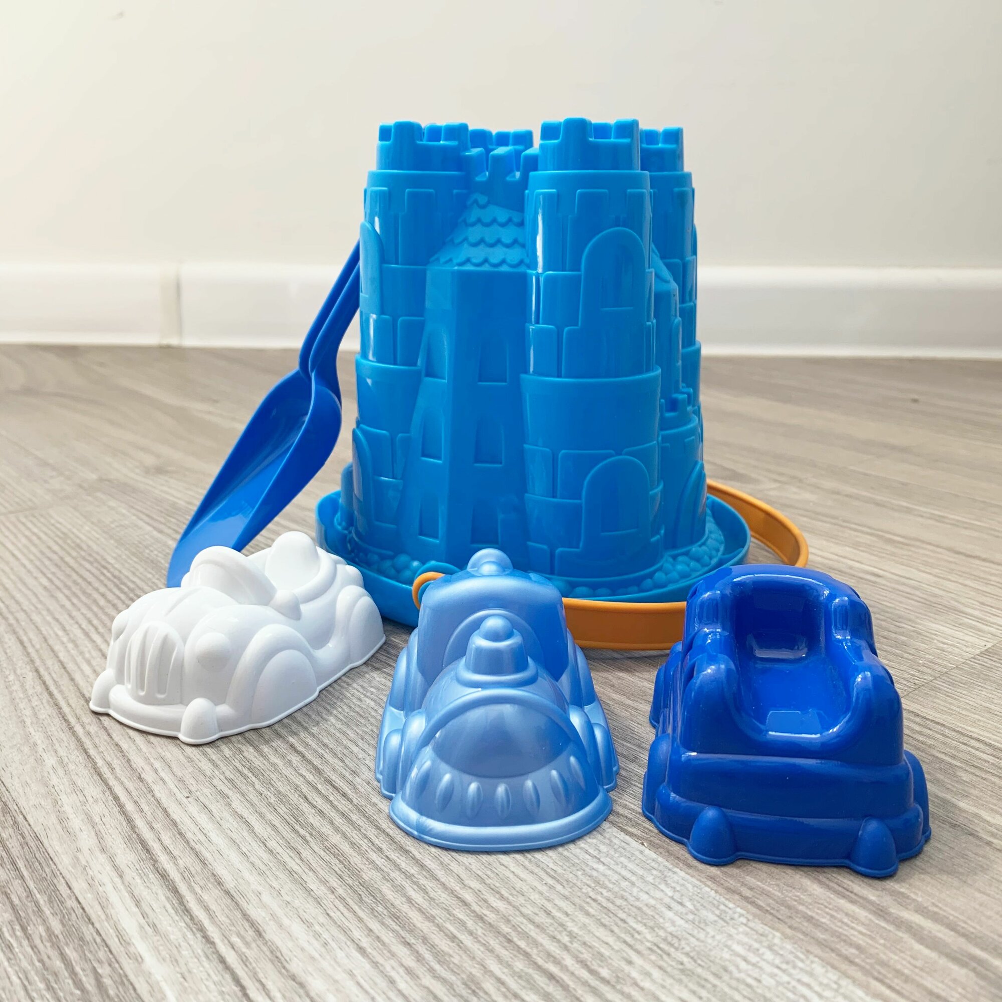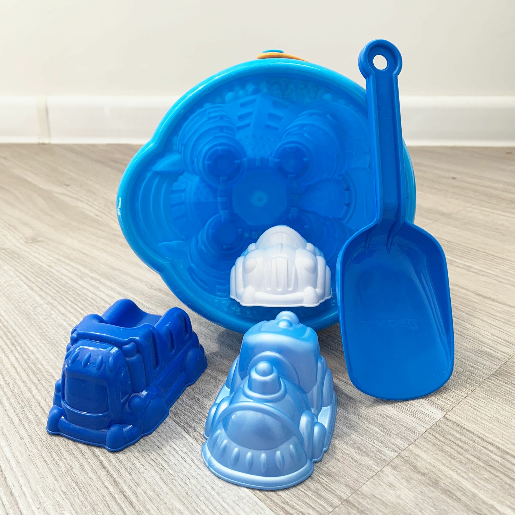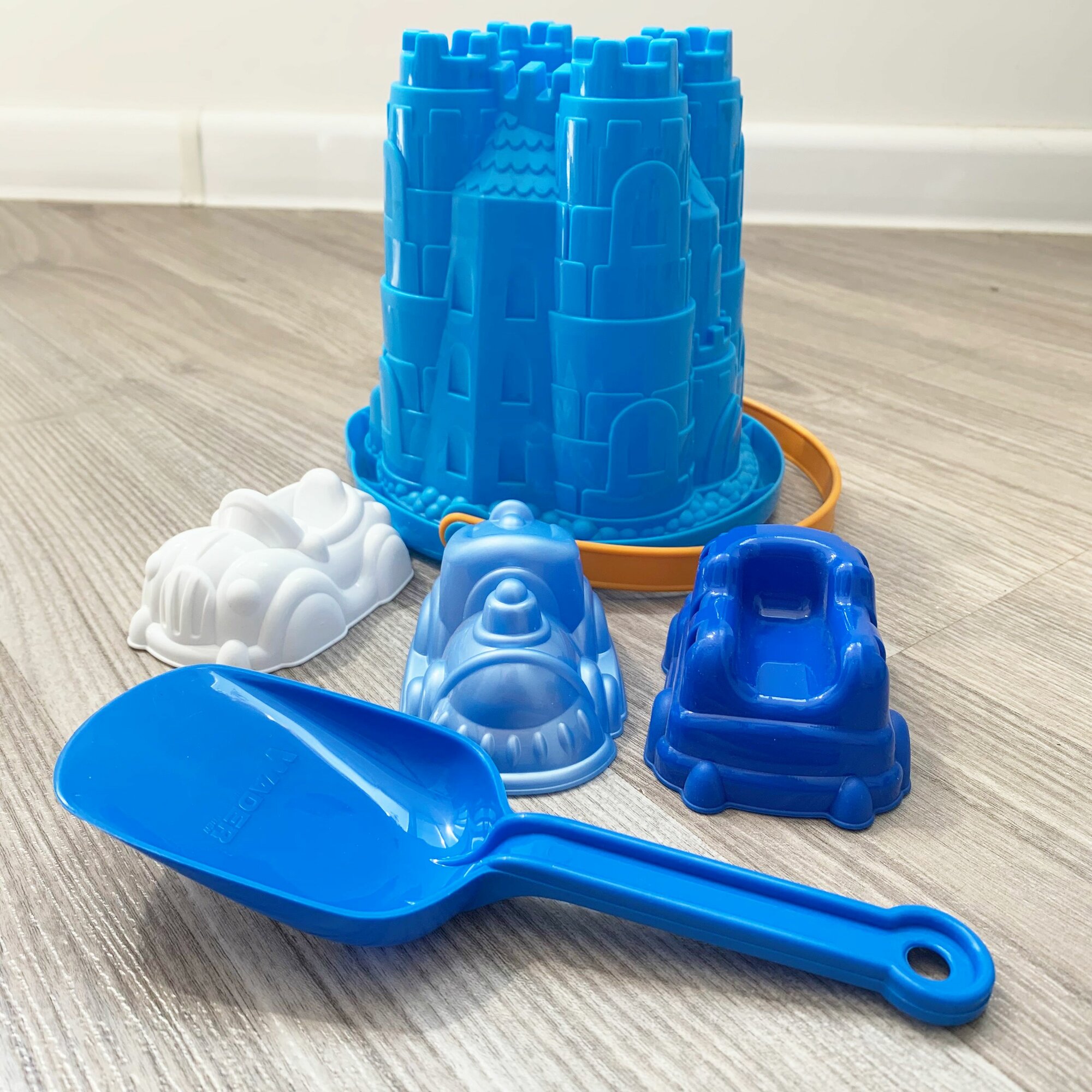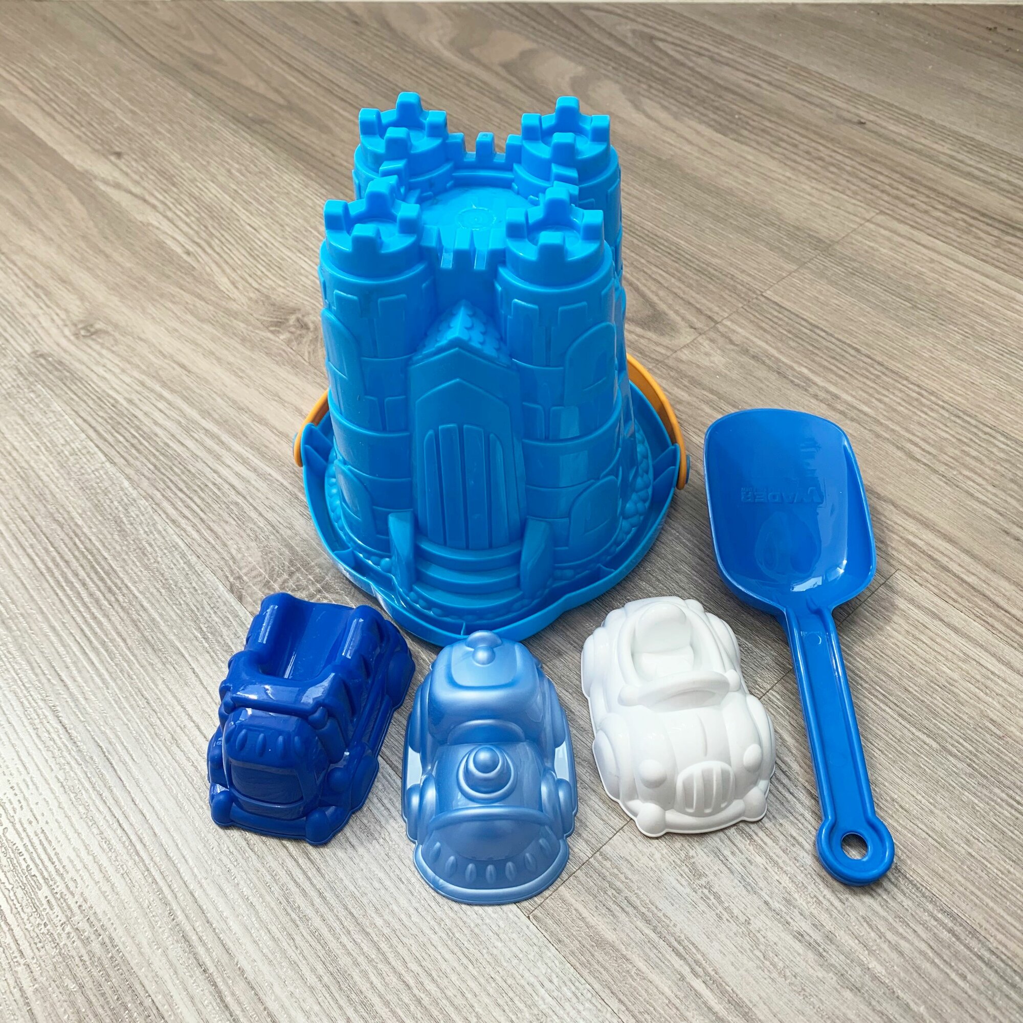 Купить Песочный набор для мальчика с 3D формочками машинками и ведром Крепость (1,6 л) - синий