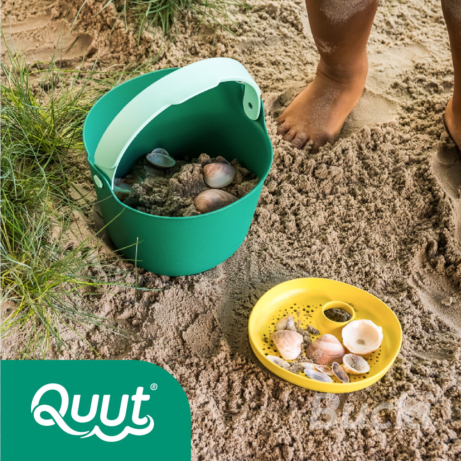 Купить Детское ведерко для воды и песка Quut Bucki с ситом. Цвет: садовый зелёный. Объём: 2 литра