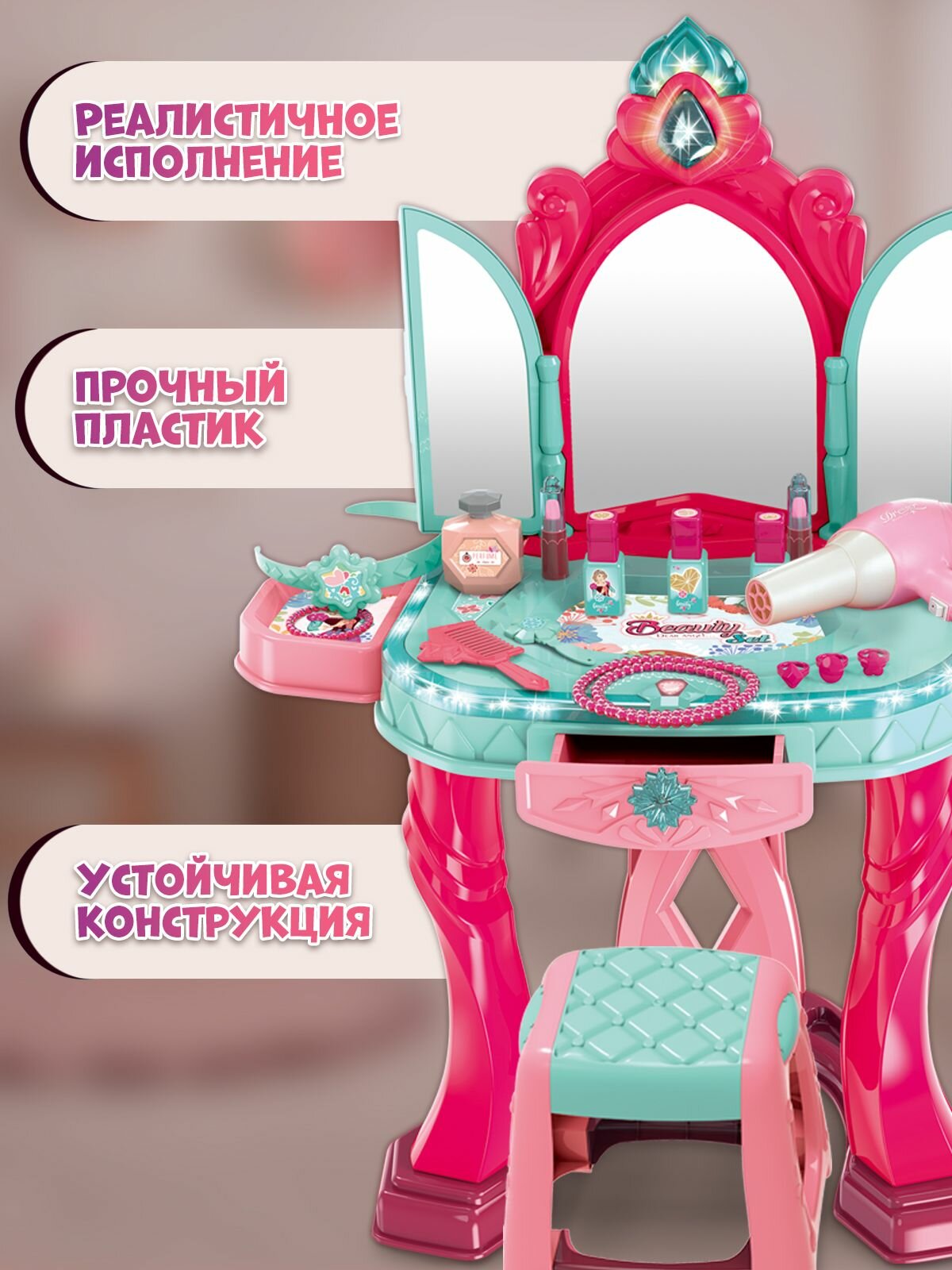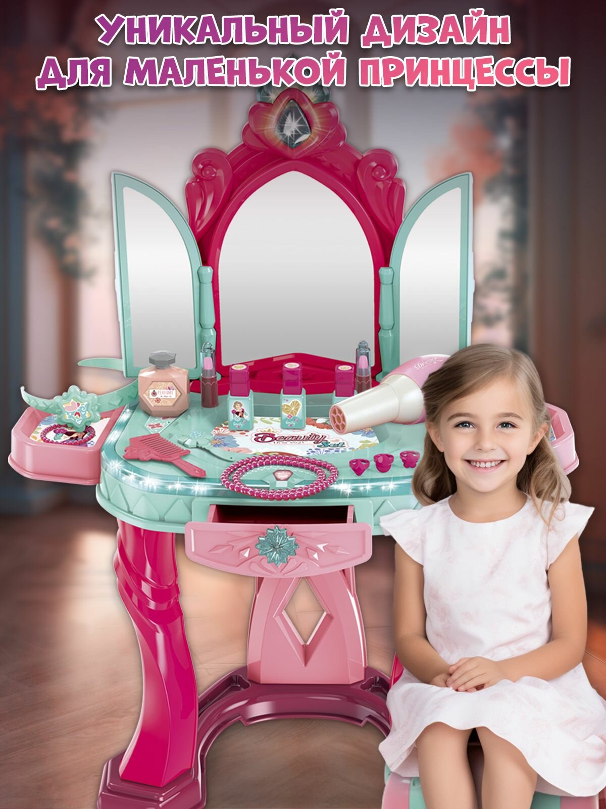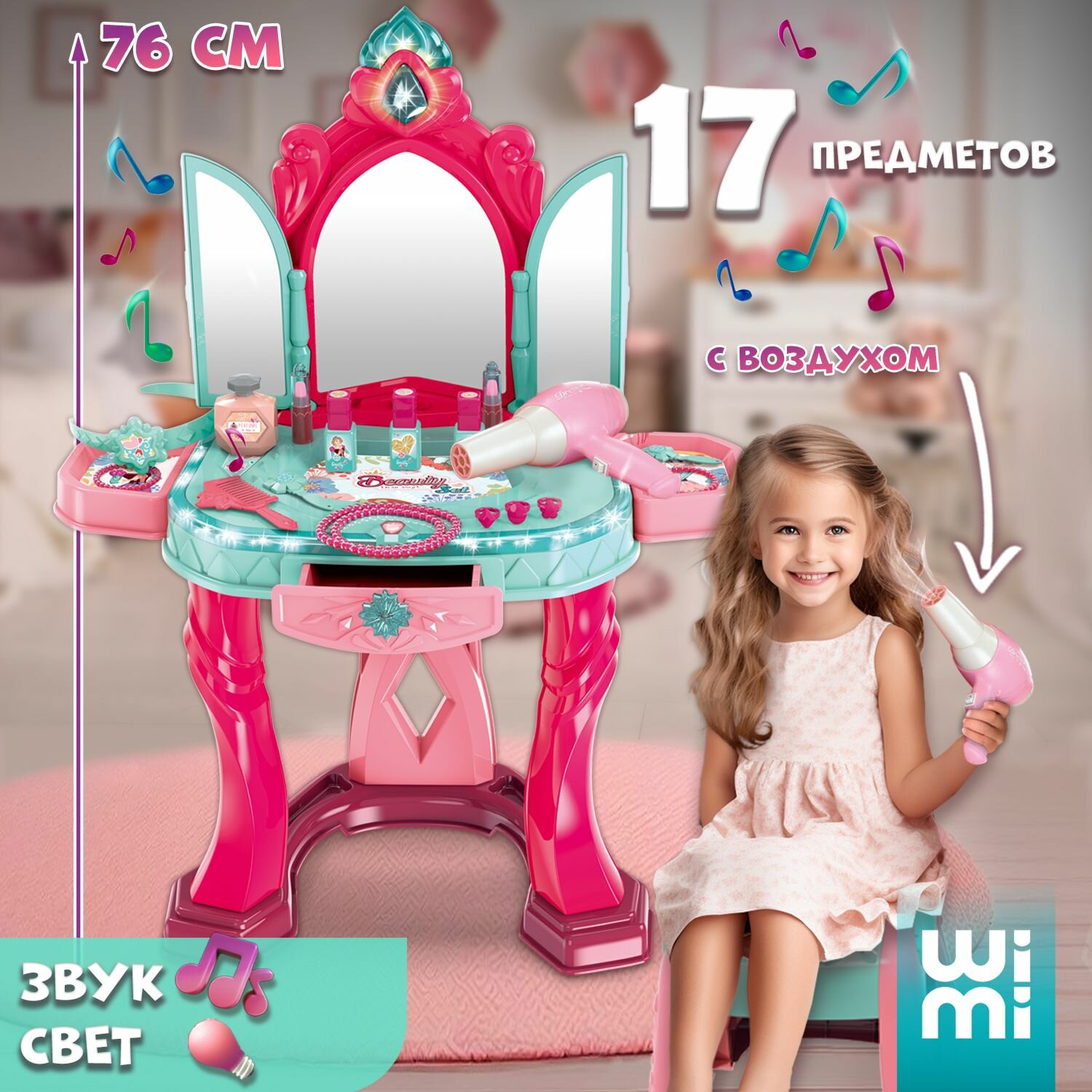 Туалетный столик детский WiMi, салон красоты для девочек, детская парикмахерская с феном, трюмо с зеркалом со светозвуковыми эффектами интересное: