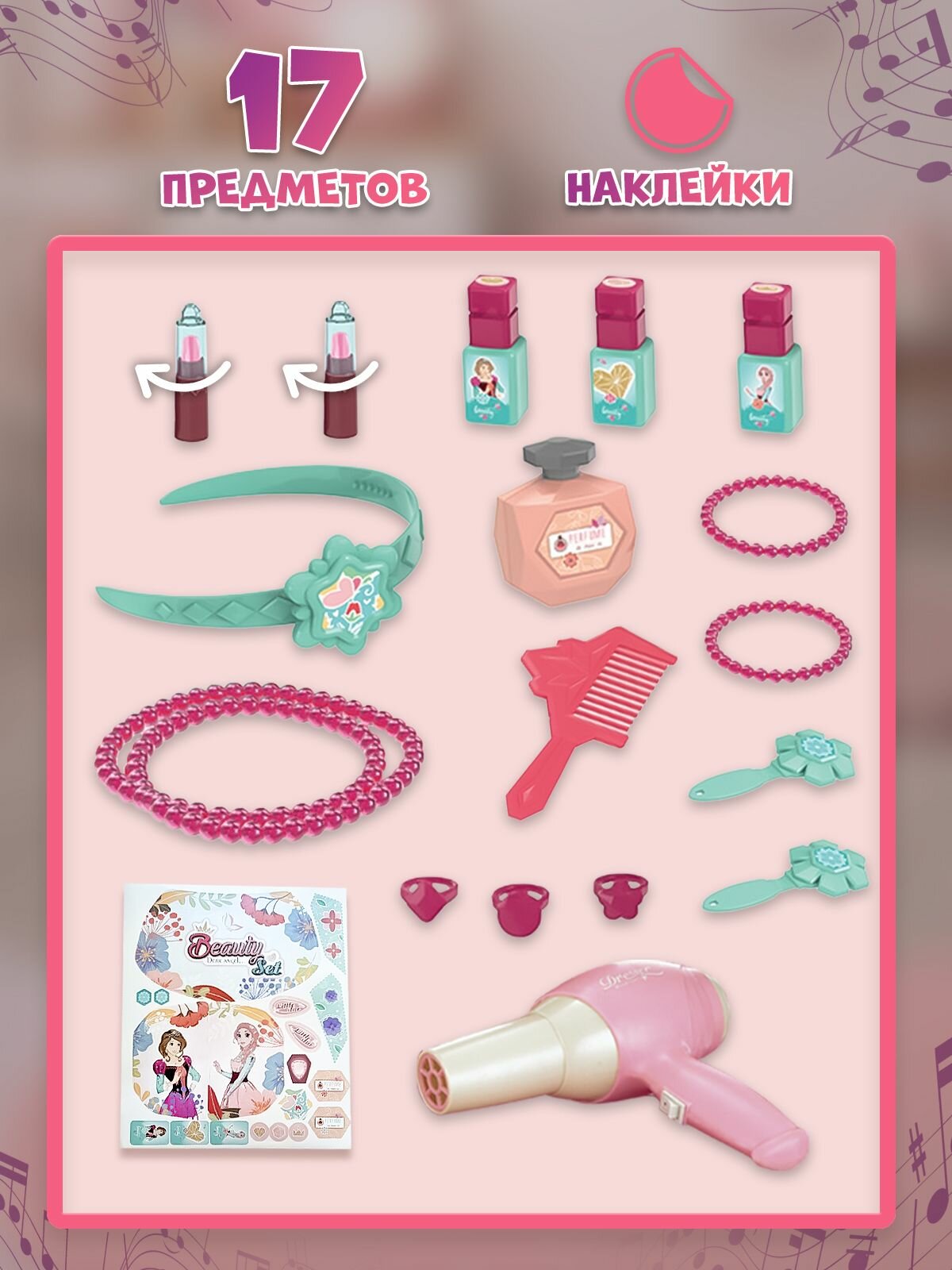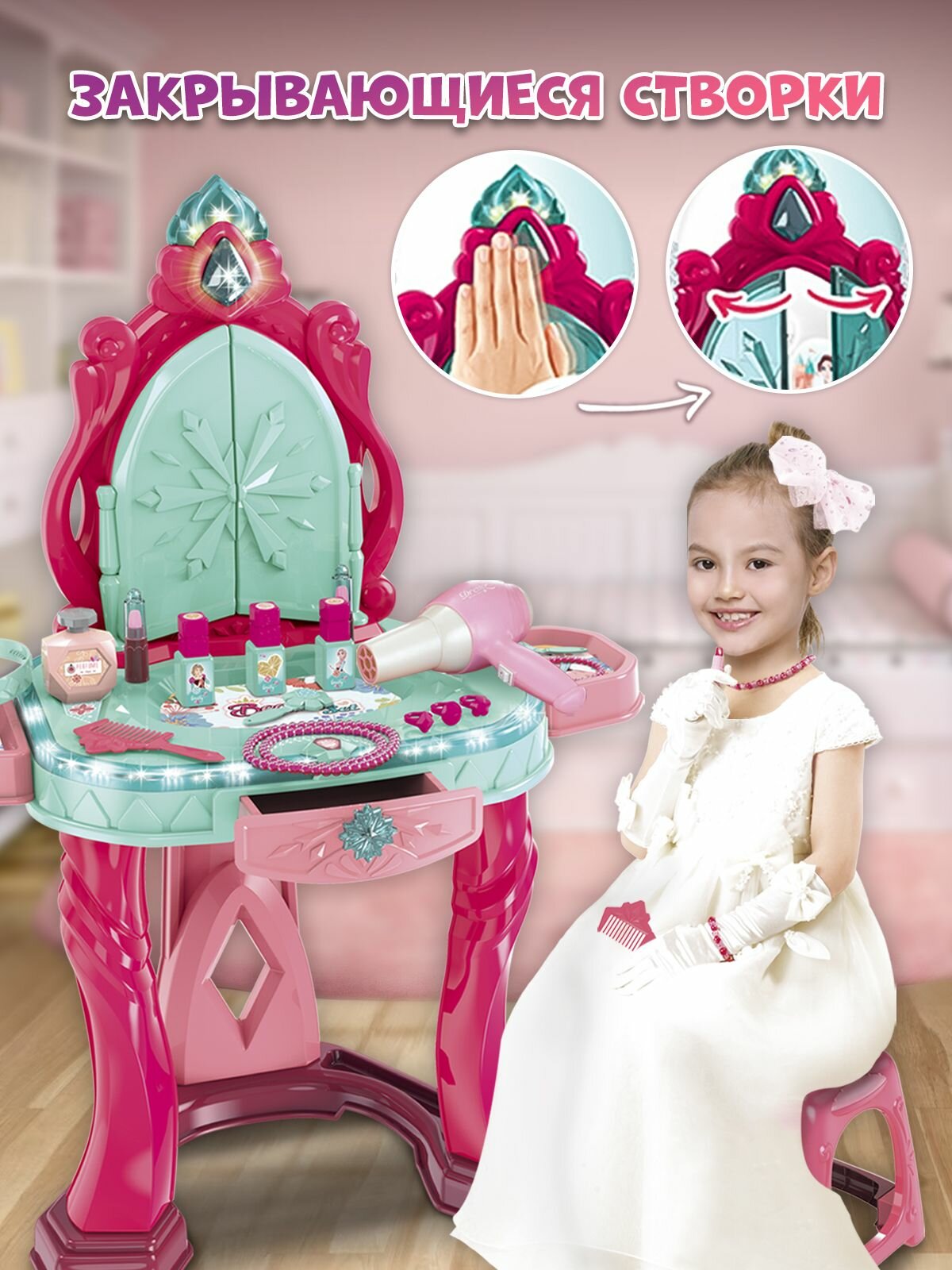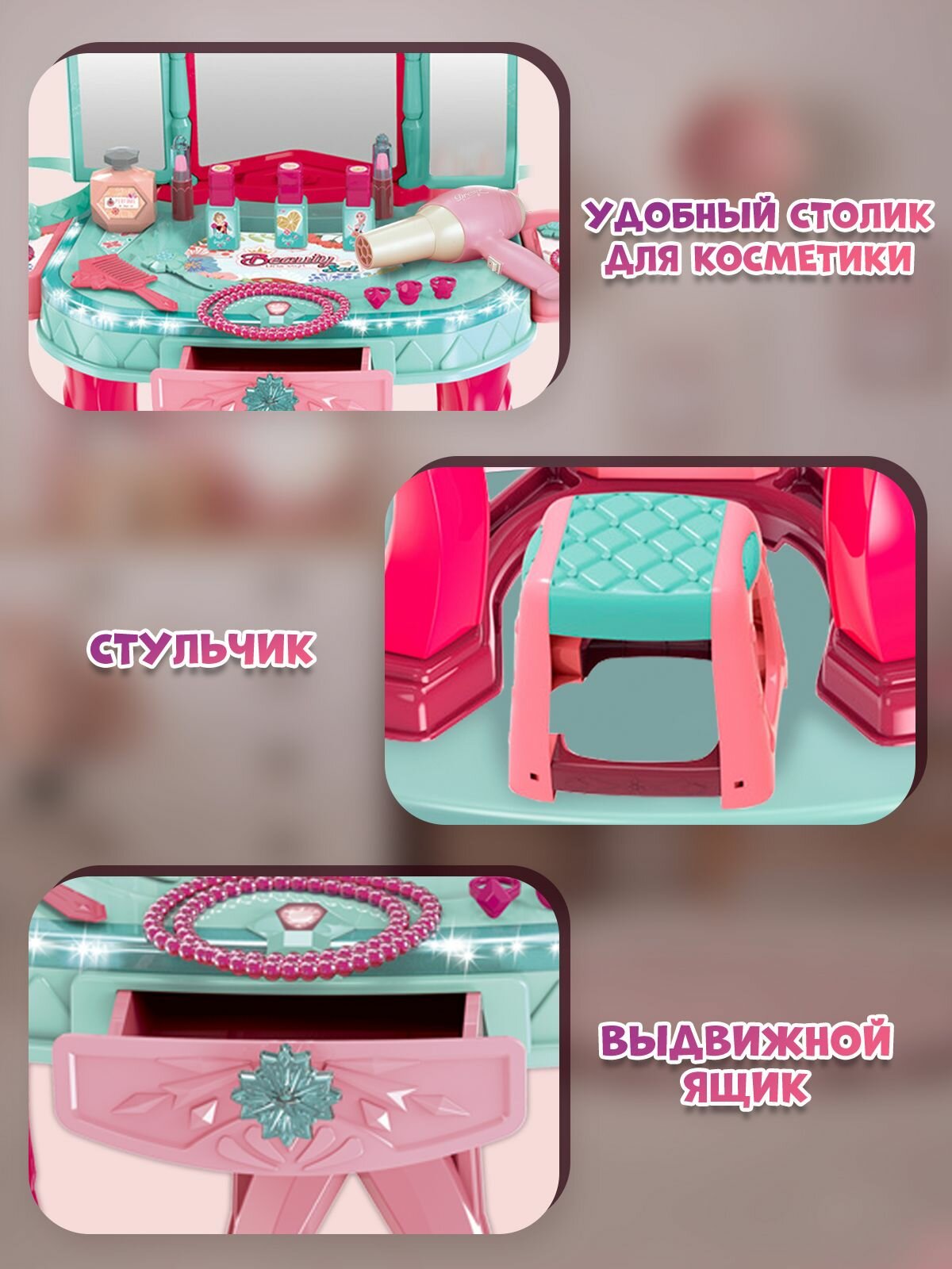 Туалетный столик детский WiMi, салон красоты для девочек, детская парикмахерская с феном, трюмо с зеркалом со светозвуковыми эффектами интересное: